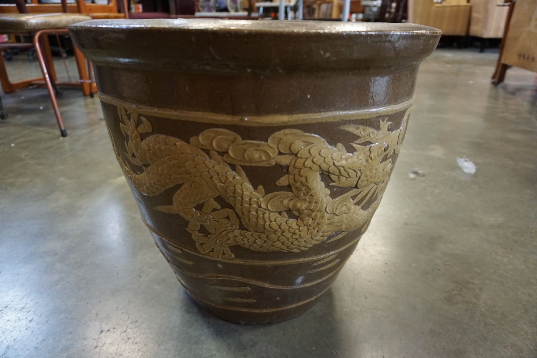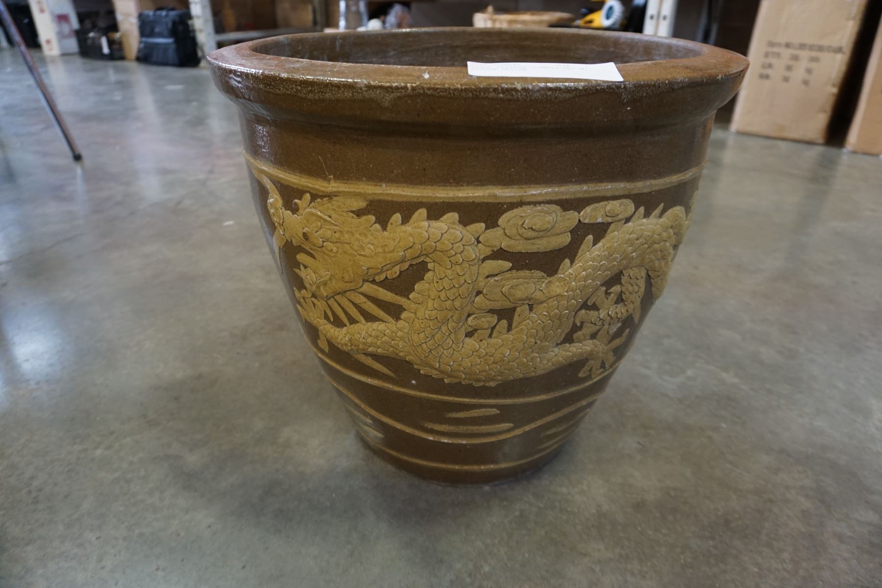 LARGE EASTERN PLANTER POT W/ DRAGON DESIGN