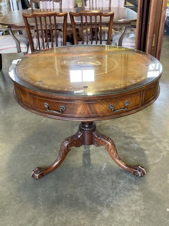 LARGE ENTRY PARLOUR TABLE W/ DRAWER AND GLASS TOP