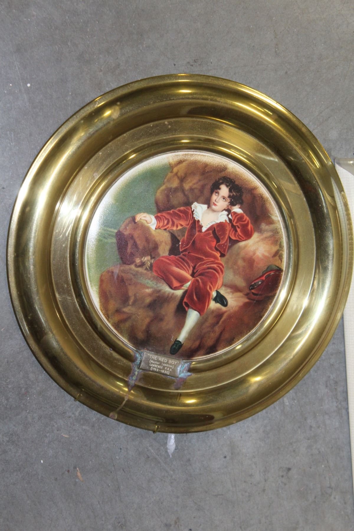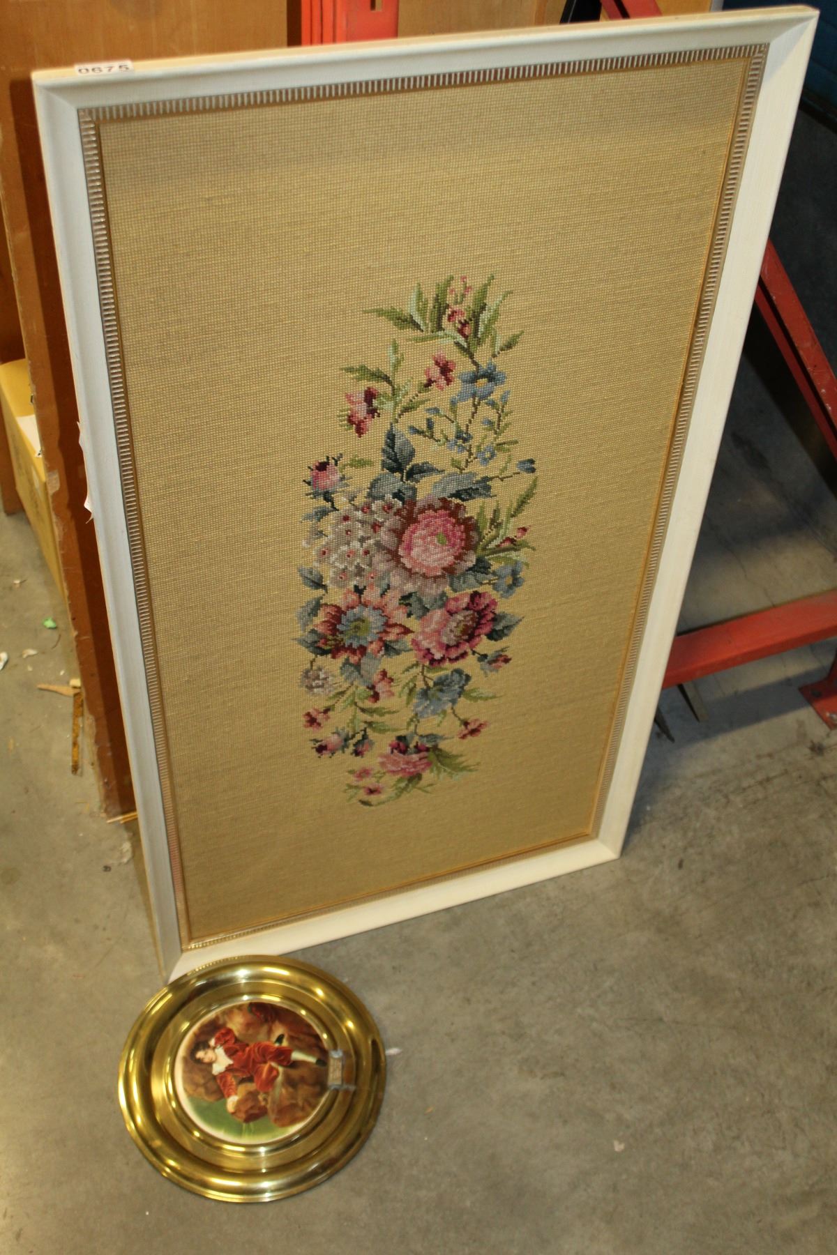 LARGE FRAMED NEEDLEWORK AND THE RED BOY VINTAGE WALL HANGING