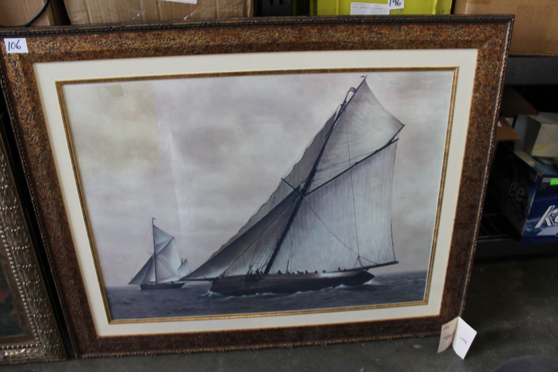 LARGE FRAMED PRINT SHIPS A SAILIN
