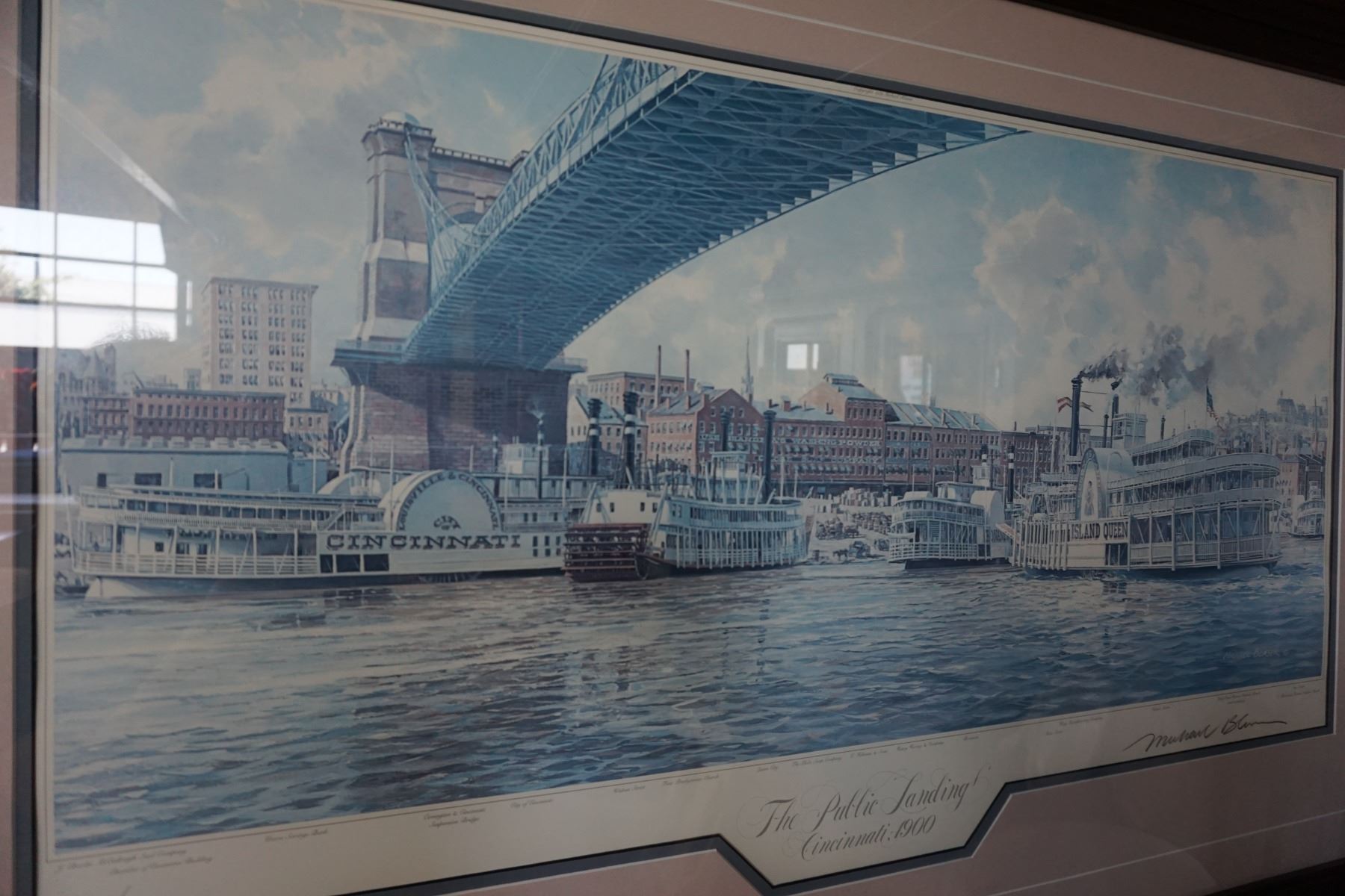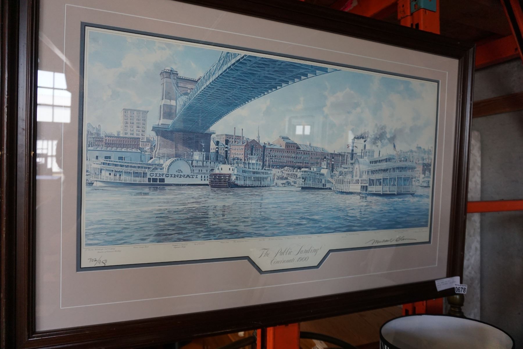 LARGE FRAMED THE PUBLIC LANDING CINCINNATI 1900 SIGNED 702/950