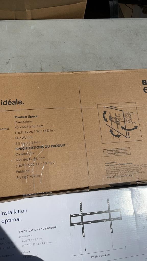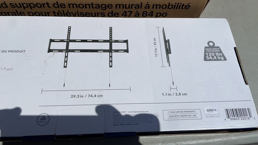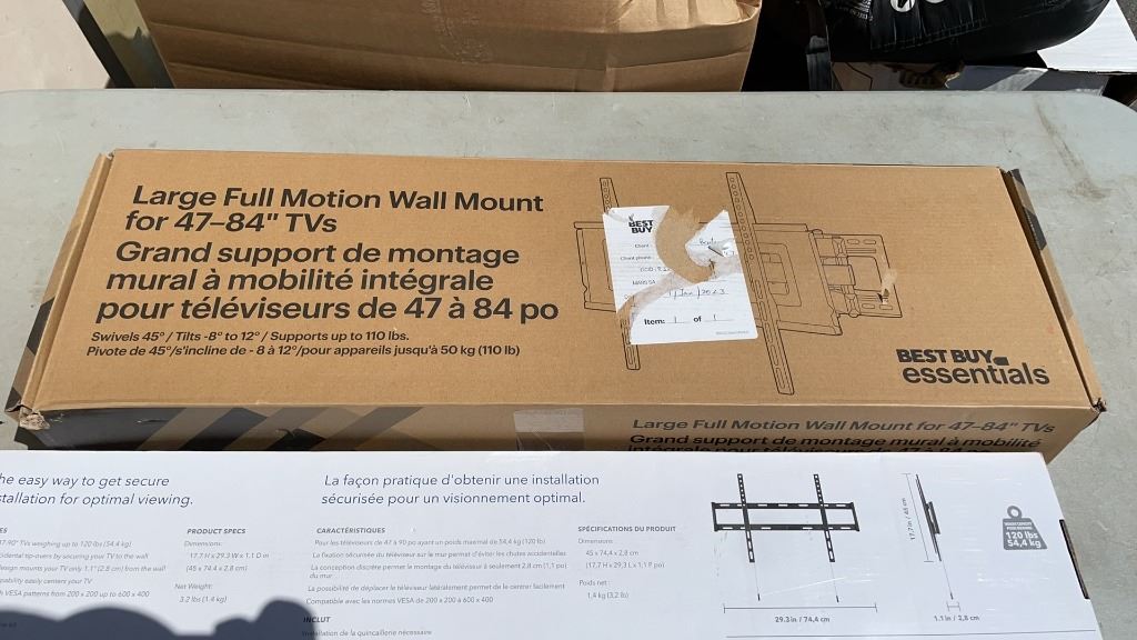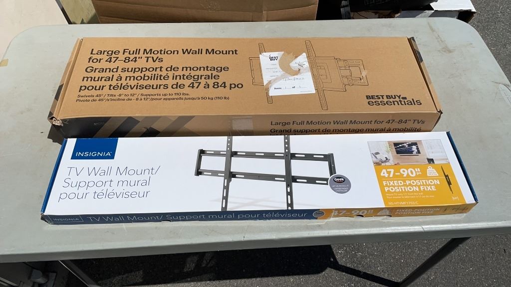 LARGE FULL MOTION 47" -84" TV MOUNT AND INSIGNIA 47"-90" FIXED WALL MOUNT - RETAIL $288