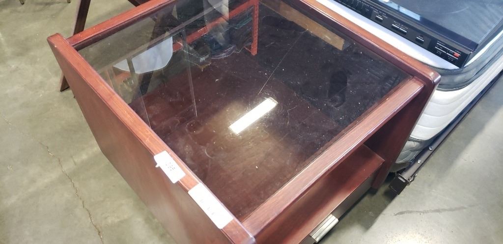 LARGE GLASSTOP ONE DRAWER ENDTABLE