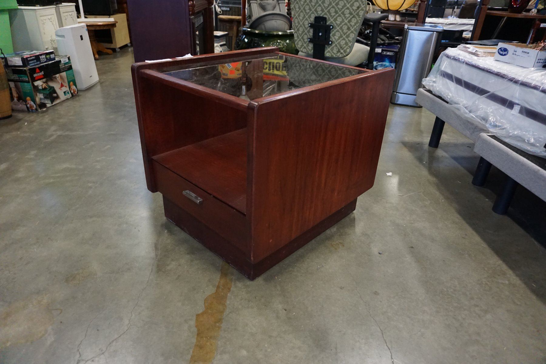 LARGE GLASSTOP ONE DRAWER ENDTABLE