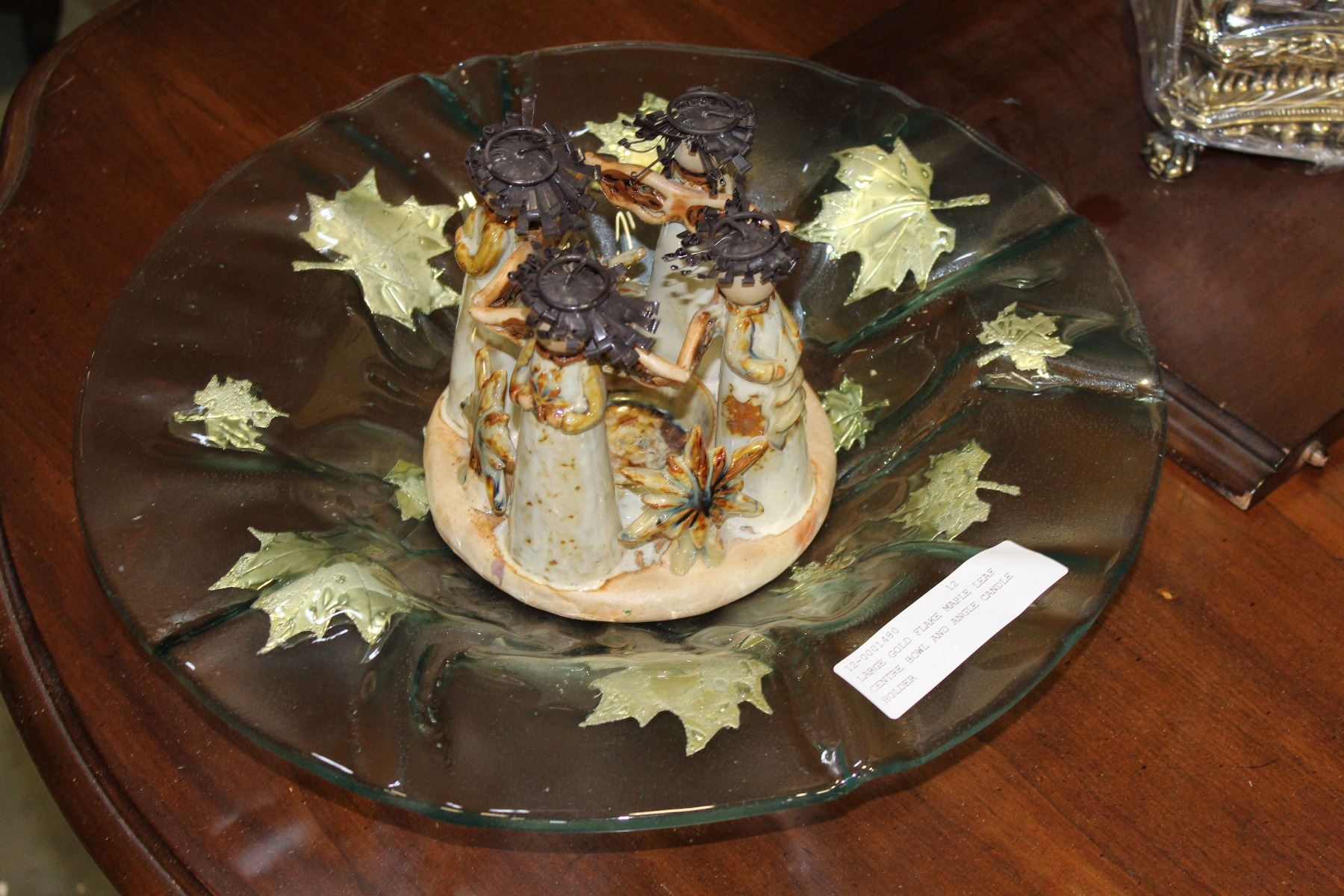 LARGE GOLD FLAKE MAPLE LEAF CENTRE BOWL AND ANGLE CANDLE HOLDER