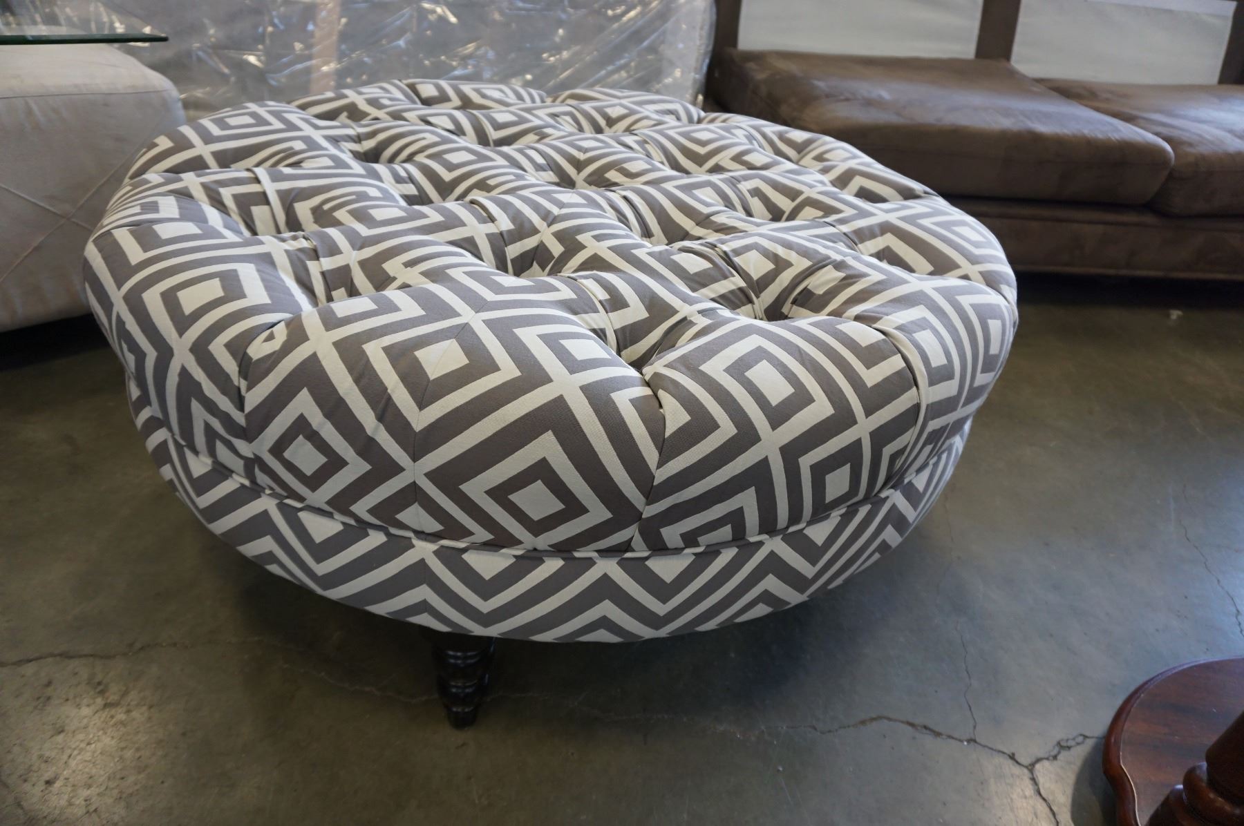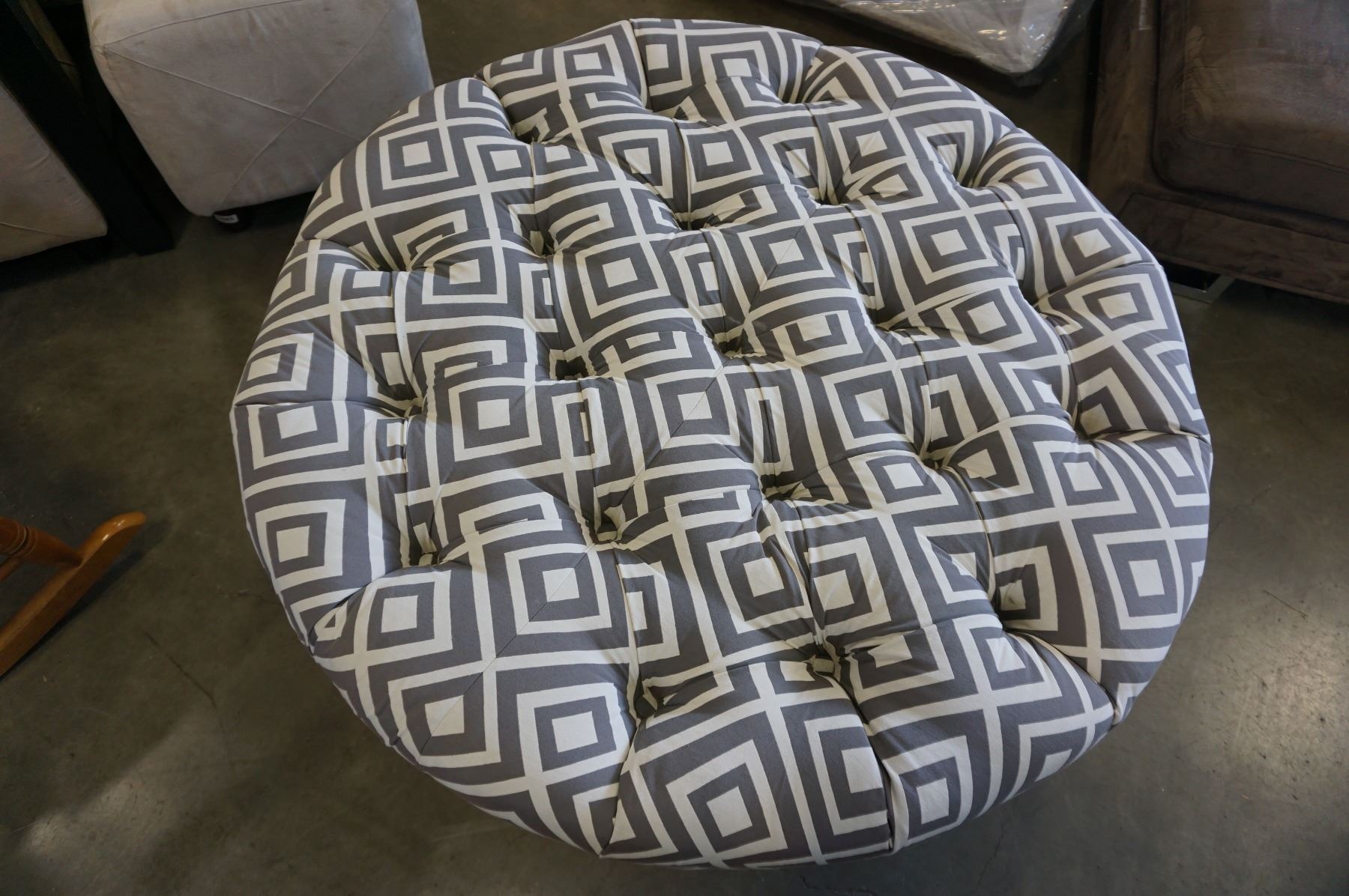 LARGE GREY TUFTED GREY AND BLACK OTTOMAN