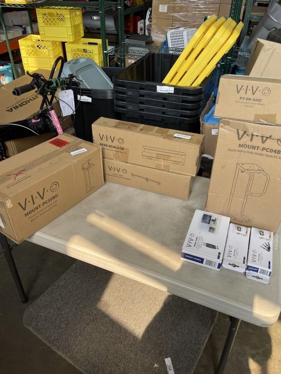 LARGE LOT OF ASSORTEC VIVO MOUNTS, ACCESSORIES, CABLE MANAGEMENT ETC