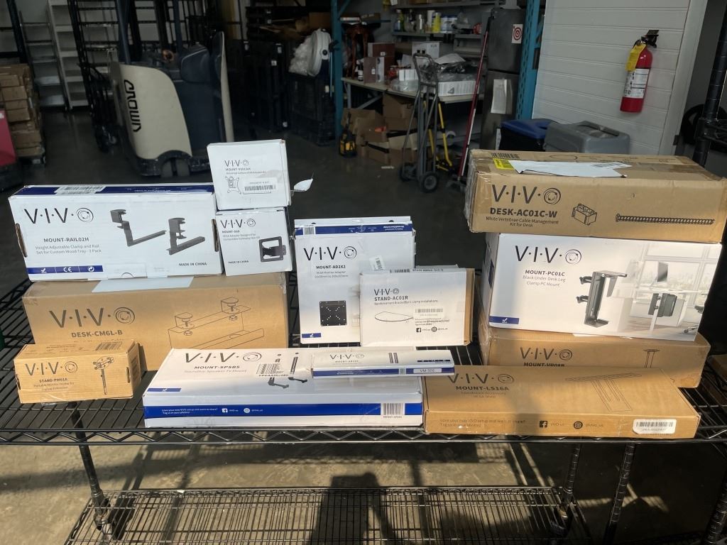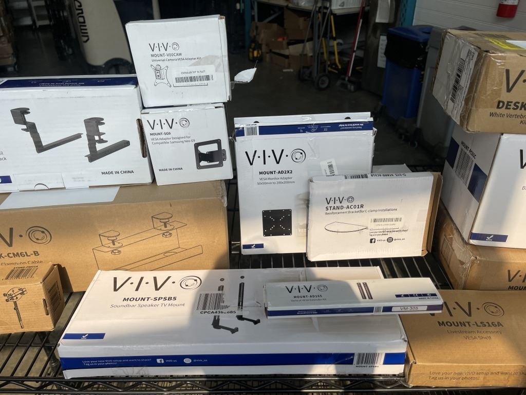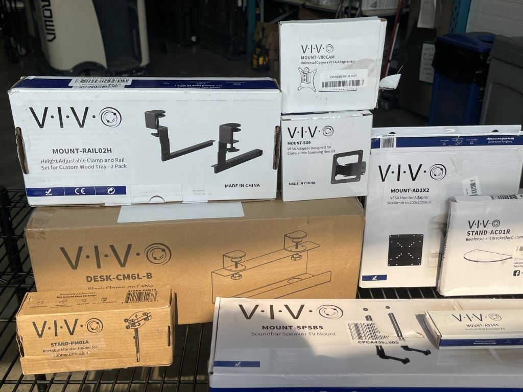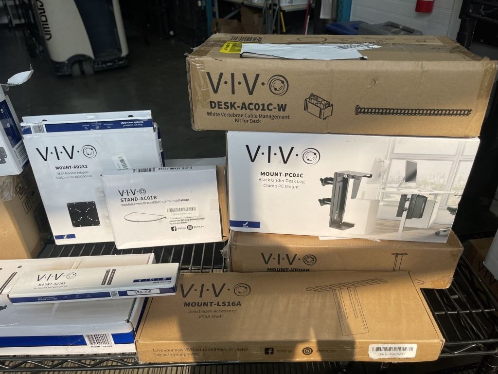 LARGE LOT OF ASSORTEC VIVO MOUNTS, ACCESSORIES, CABLE MANAGEMENT ETC