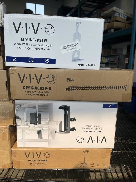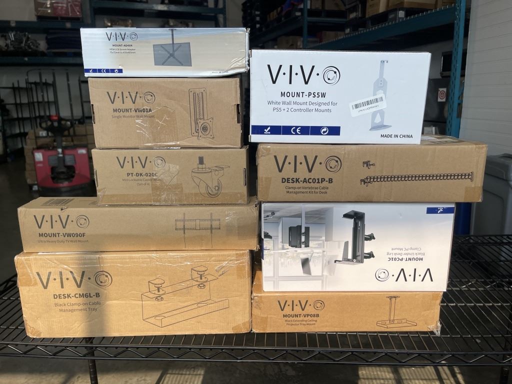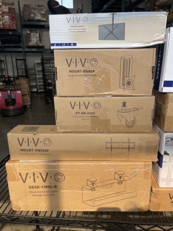 LARGE LOT OF ASSORTEC VIVO MOUNTS, ACCESSORIES, CABLE MANAGEMENT ETC
