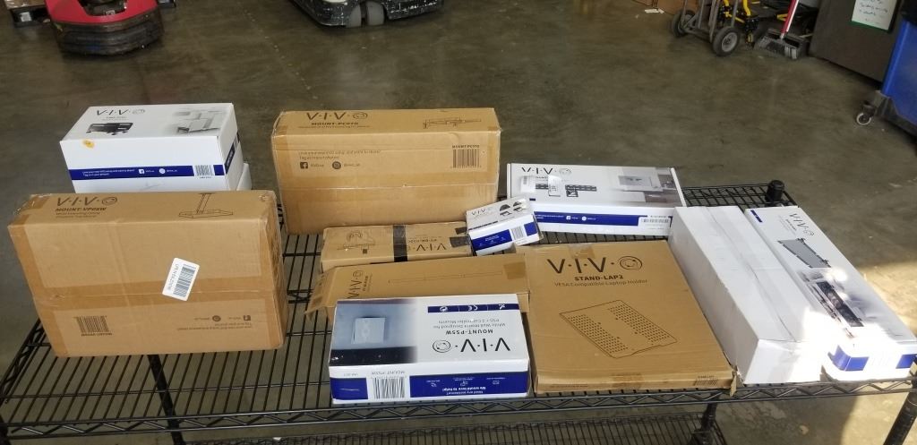 LARGE LOT OF ASSORTEC VIVO MOUNTS, ACCESSORIES, CABLE MANAGEMENT ETC