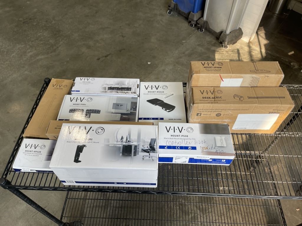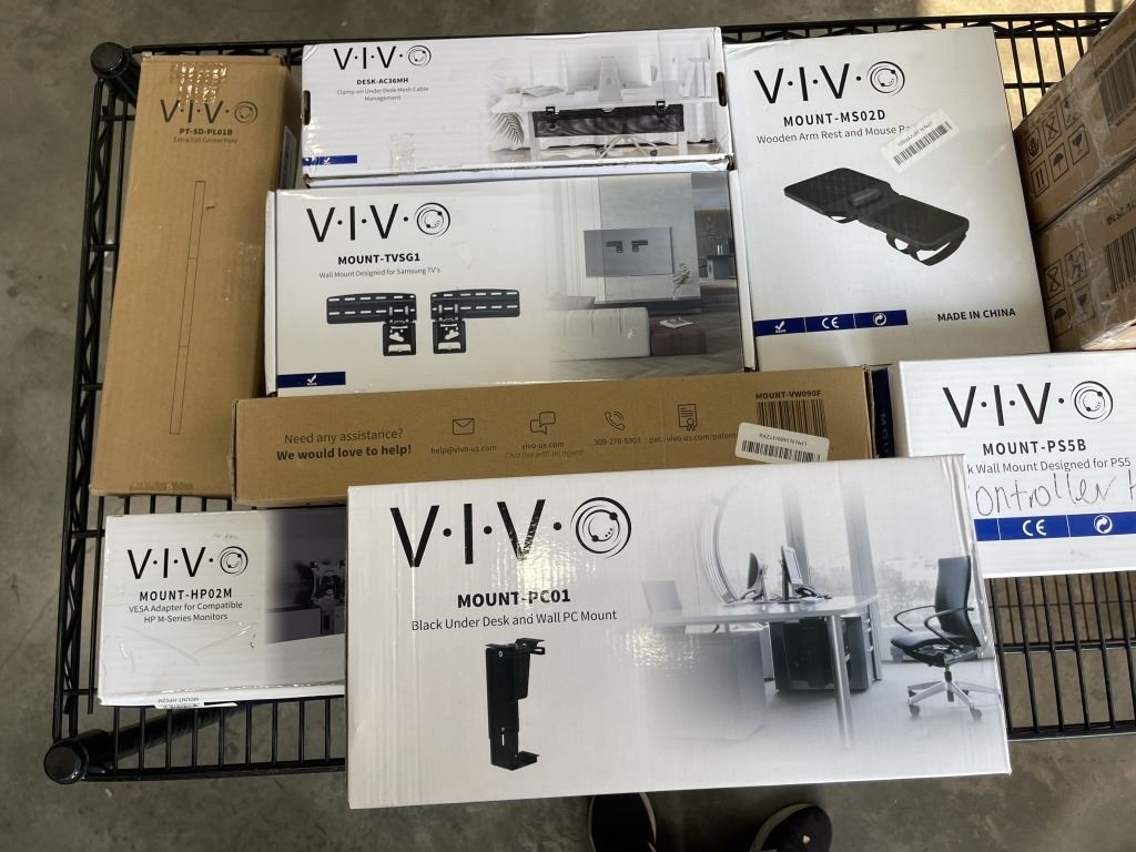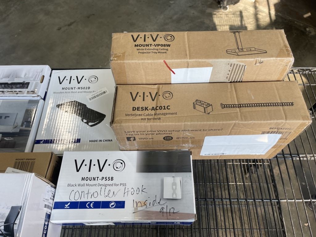LARGE LOT OF ASSORTEC VIVO MOUNTS, ACCESSORIES, CABLE MANAGEMENT ETC