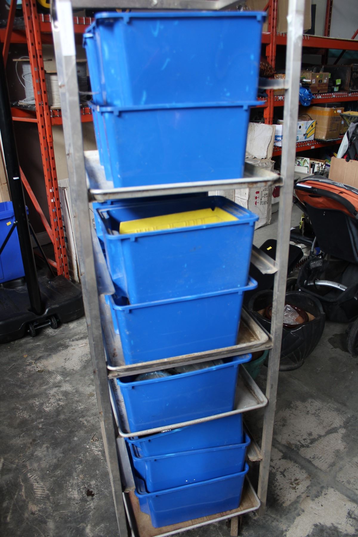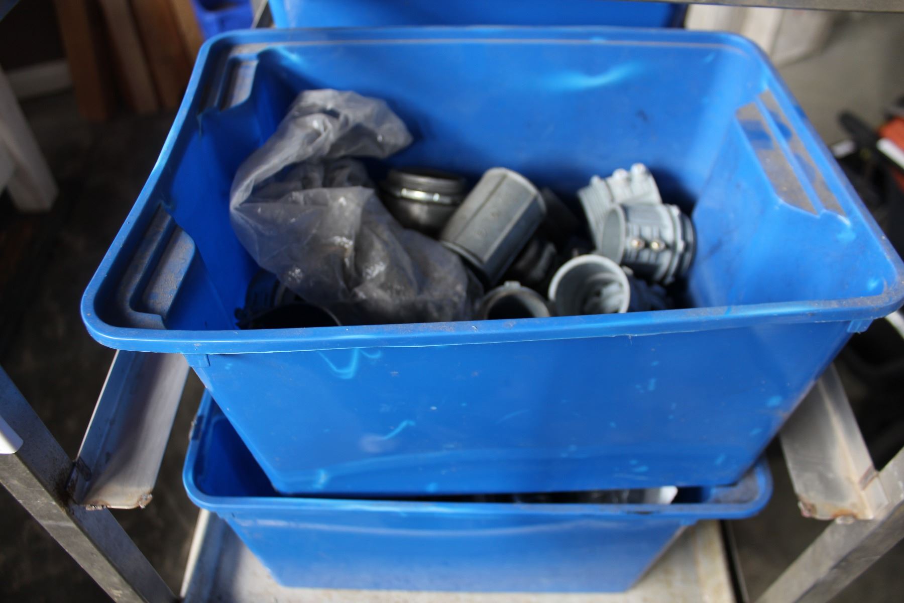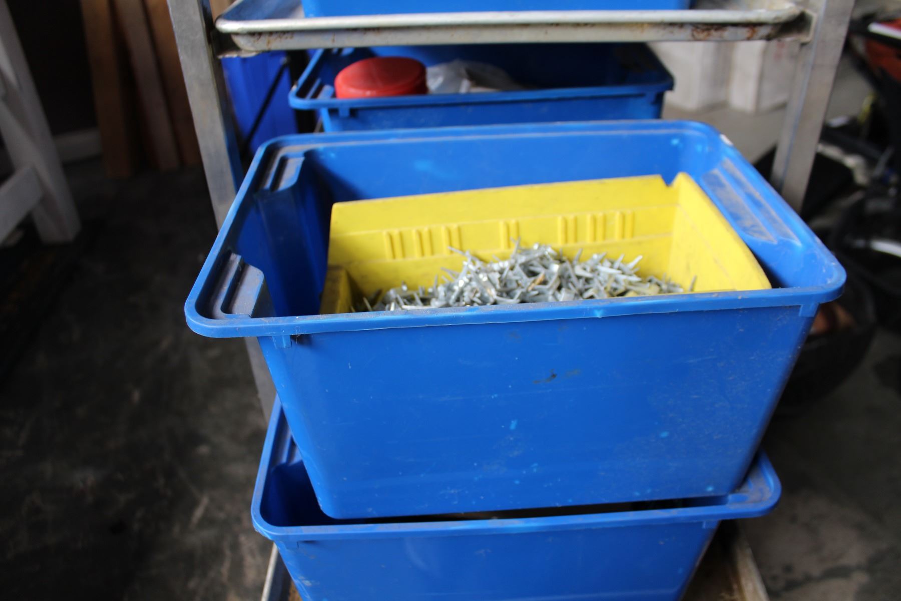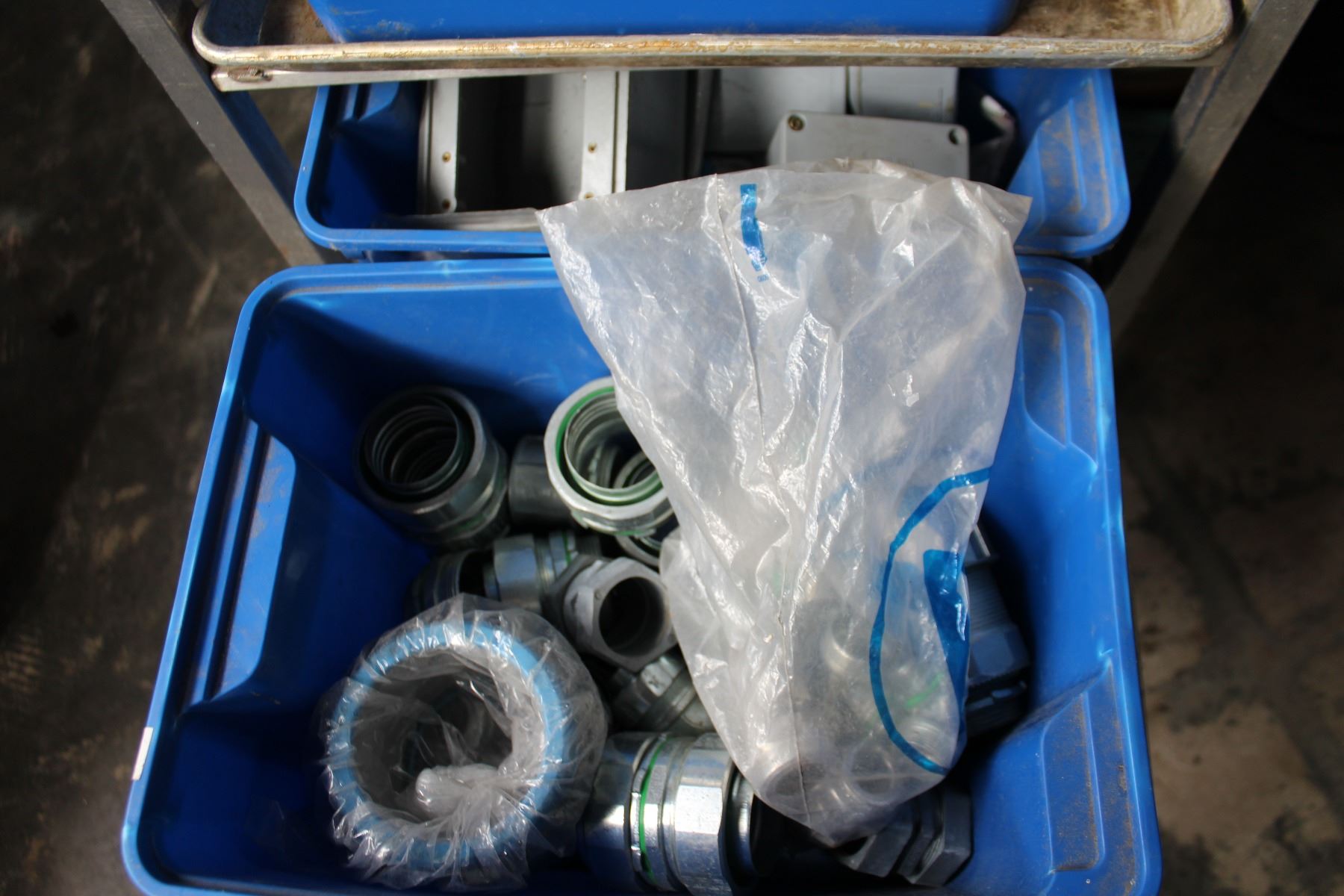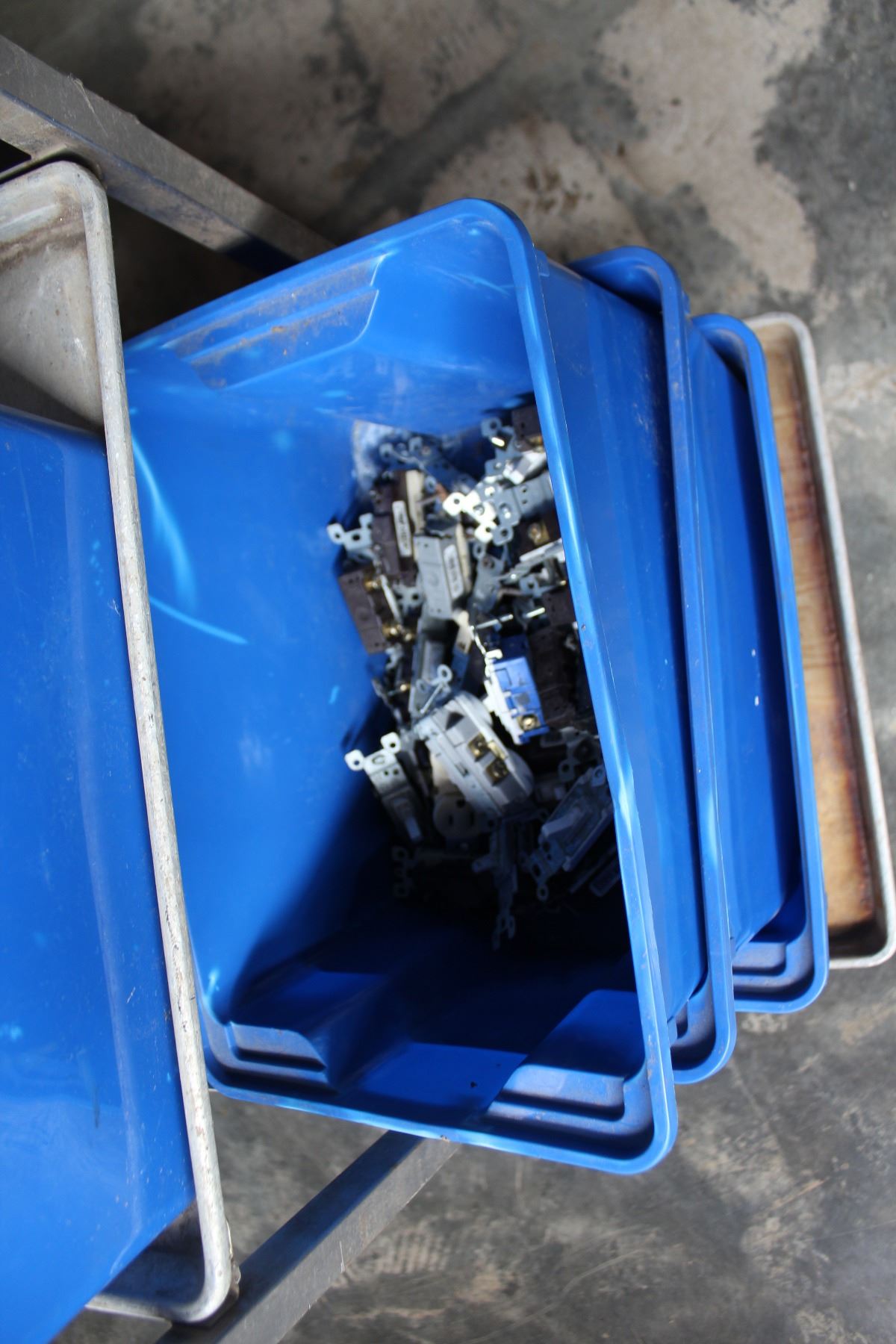 LARGE LOT OF BLUE TOTES OF ELECTRICAL HARDWARE