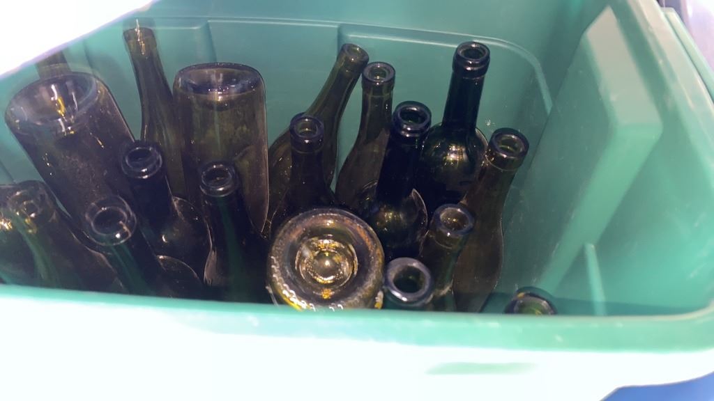 LARGE LOT OF GLASS CARBOYS, BOTTLE CORKER, DRYER AND WINE BOTTLES - 7 GLASS CARBOYS, APPX 200 BOTTLE