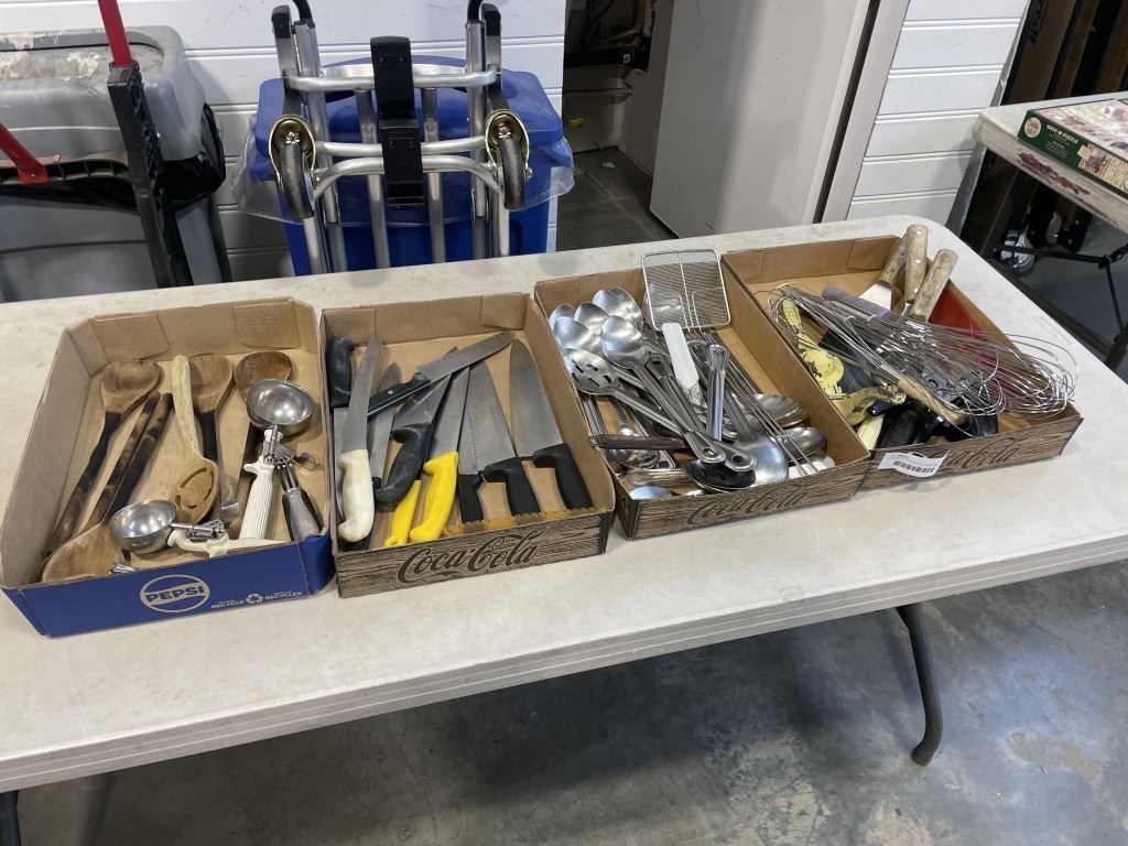 LARGE LOT OF KITCHEN COOKING AND SERVING UTENSILS