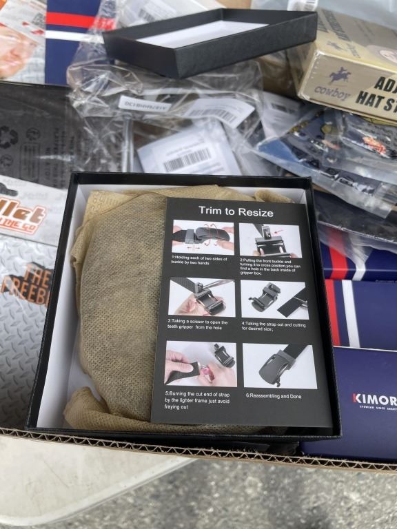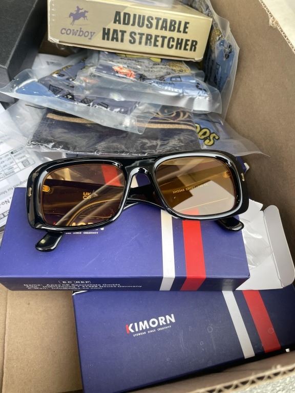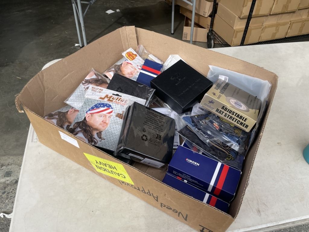 LARGE LOT OF NEW ASSORTED BELTS, SUNGLASES, BANDANAS ETC
