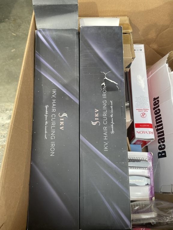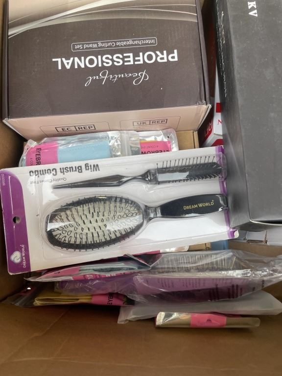 LARGE LOT OF NEW BEAUTY AND TOILETRY ITEMS INLCUDING STRAIGHTENERS, COMBS, AND MORE