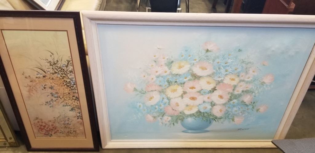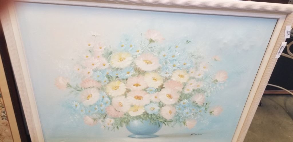 LARGE OIL ON CANVAS FLORAL AND EASTER FRAMED PRINT