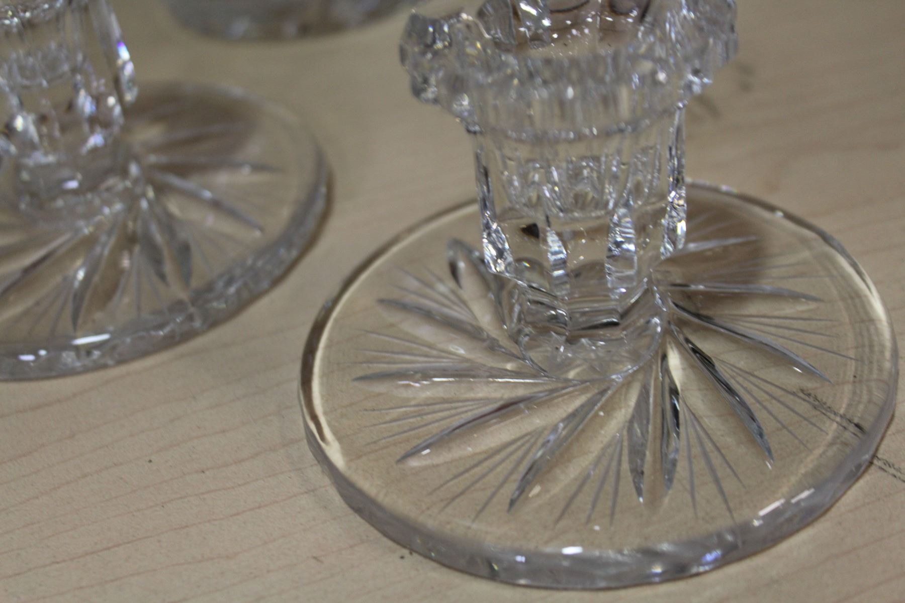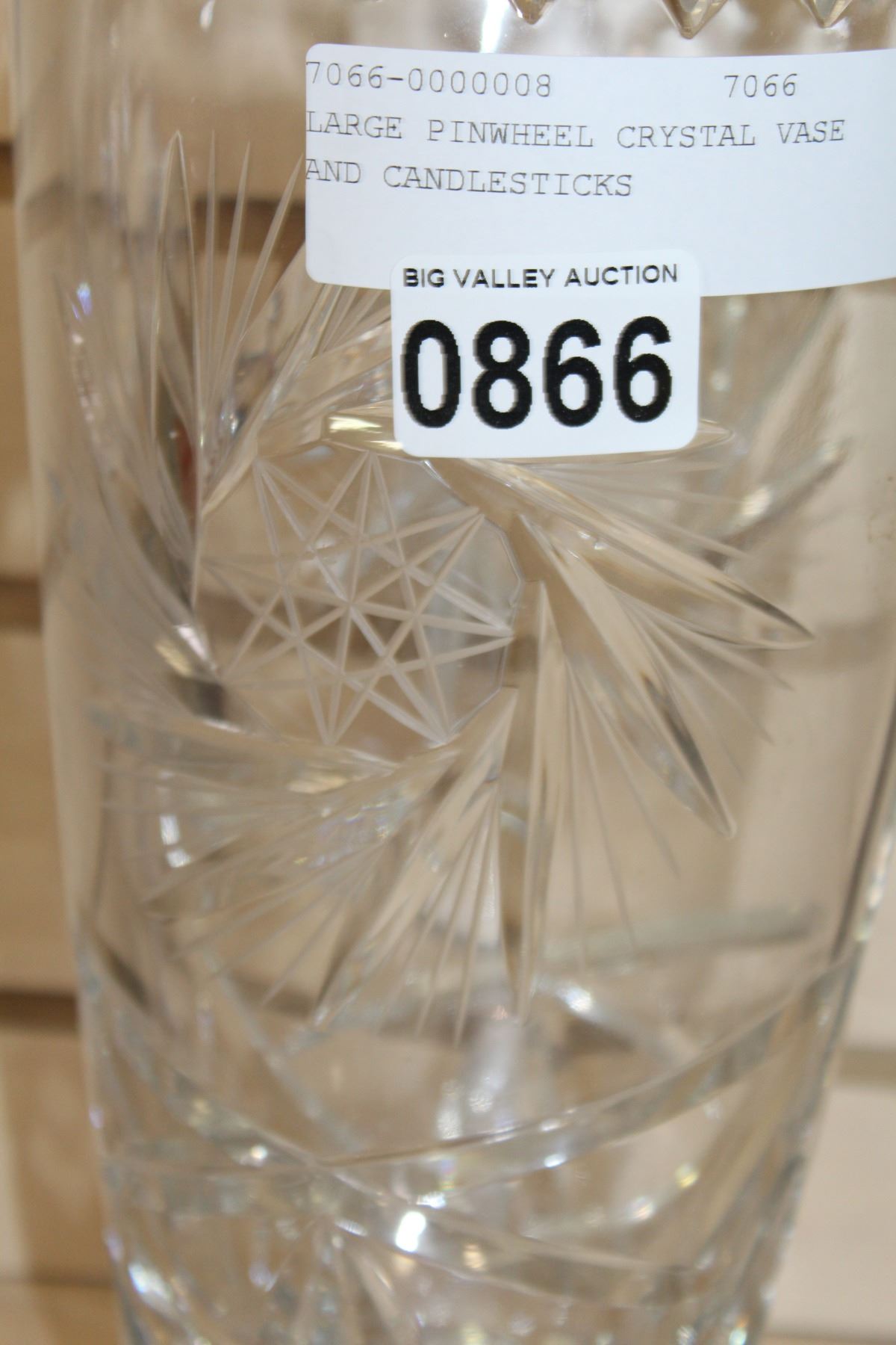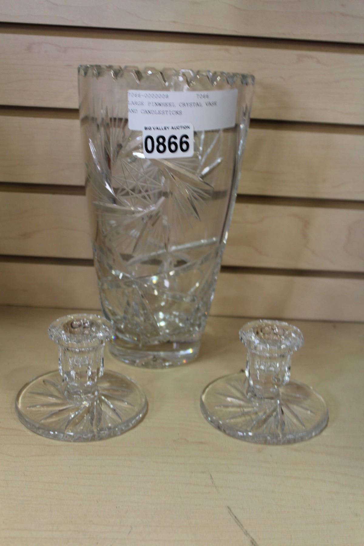 LARGE PINWHEEL CRYSTAL VASE AND CANDLESTICKS