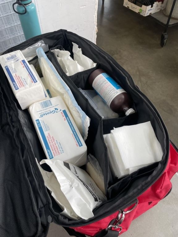 LARGE RED FIRST AID BAG WITH CONTENTS