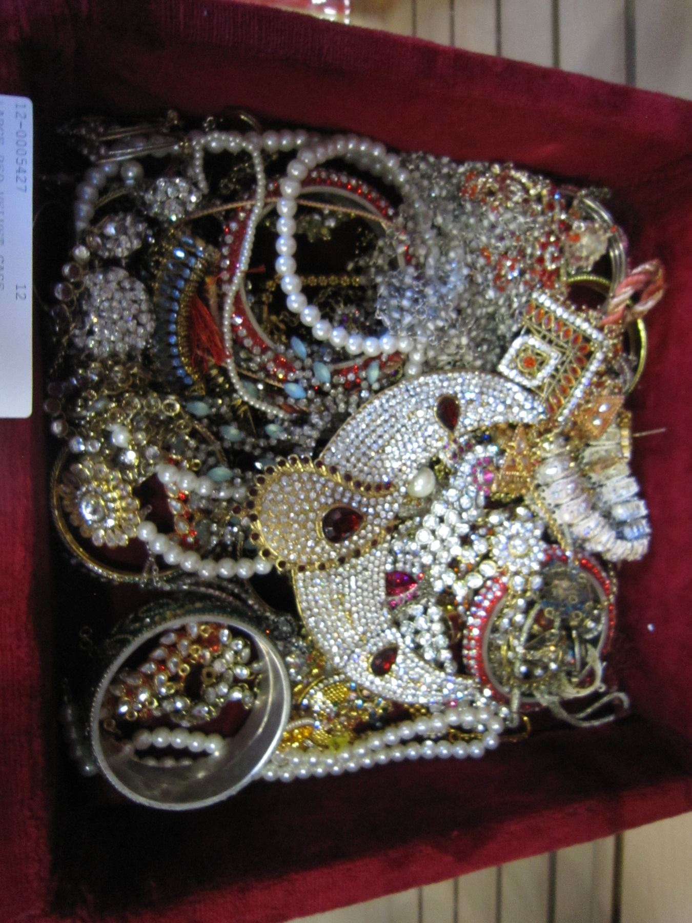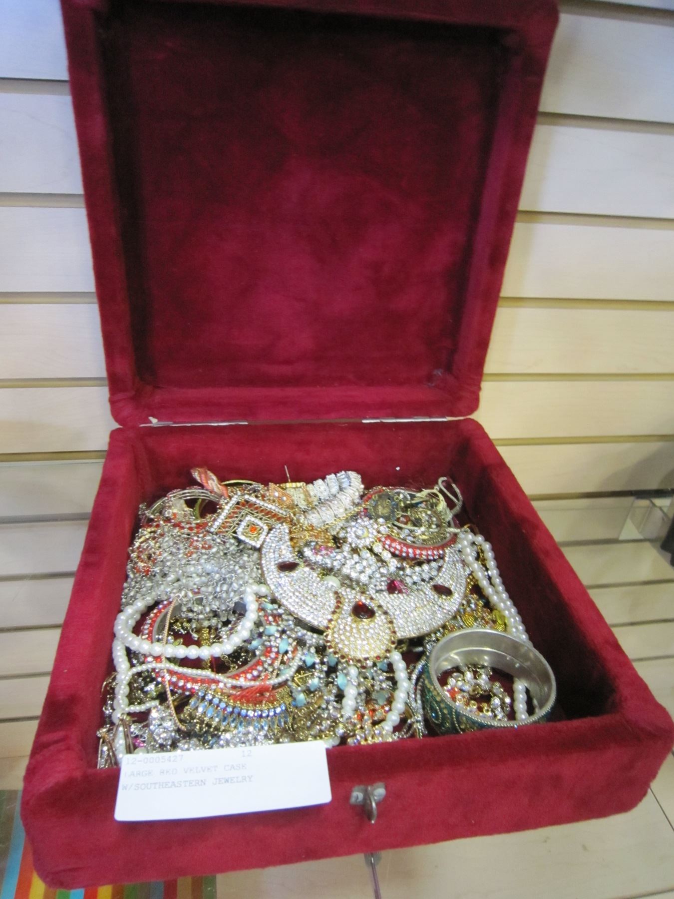 LARGE RED VELVET CASE W/SOUTHEASTERN JEWELRY