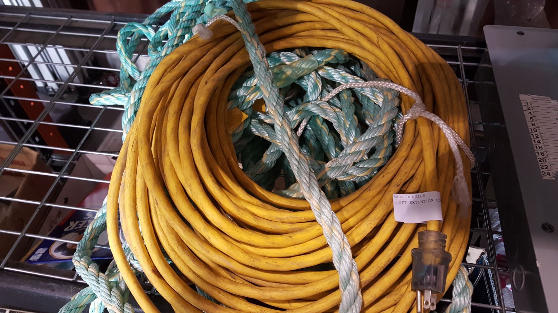 LARGE ROPE W/ EYELETS AND CLIPS AND 100FT EXTETION CORD