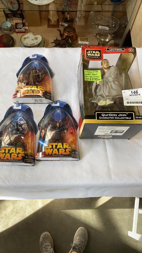 LARGE STARWARS FIGURE OUI-BON-JINN AND 2 FIGURES
