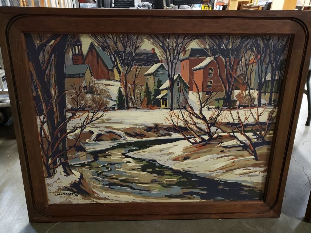 LARGE THOMAS KEITH ROBERTS SILK SCREEN OIL ON BOARD 30"X40" SIGNED