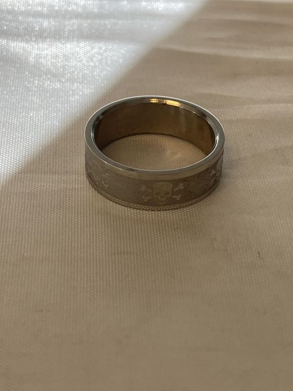LARGE TITANIUM RING BAND, ENGRAVED SKULLS SIZE 12.5