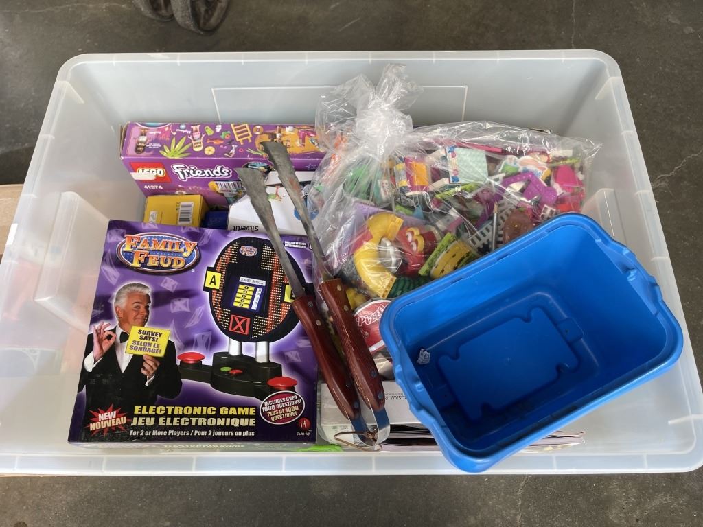 LARGE TOTE OF KIDS TOYS AND BOARDGAMES, SOME ARE NEW