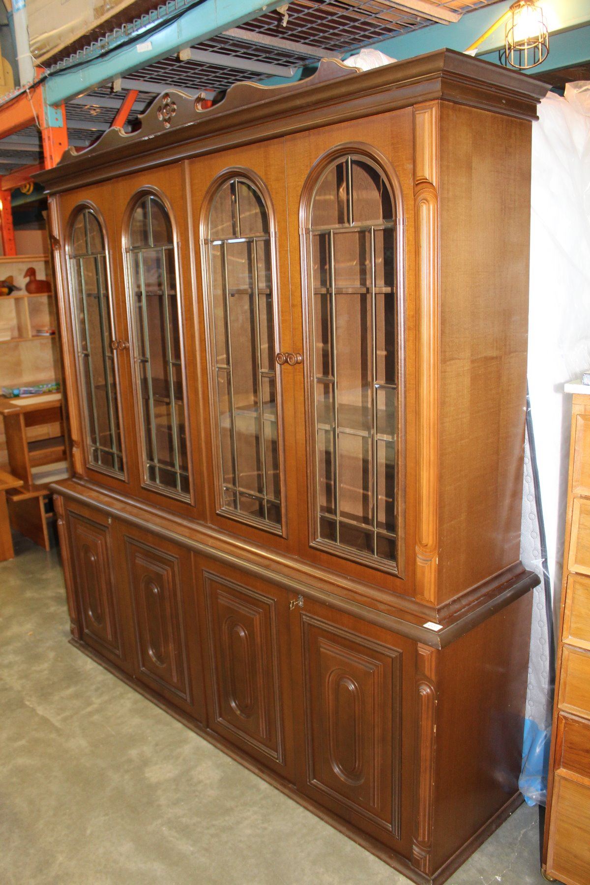 LARGE TWO PIECE BEVELLED GLASS DISPLAY CABINET