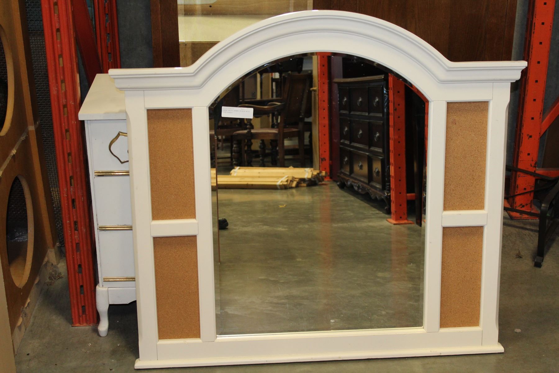 LARGE WHITE FRAMED MIRROR WITH CORK BOARDS