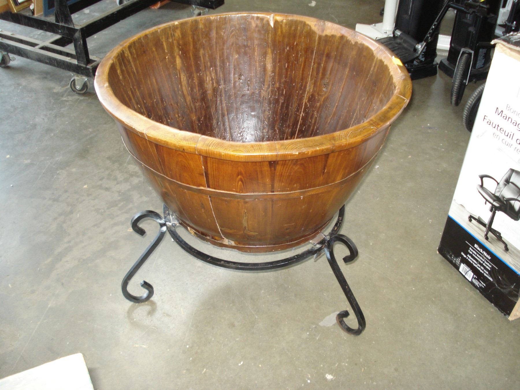 LARGE WOOD PLANTER ON STAND