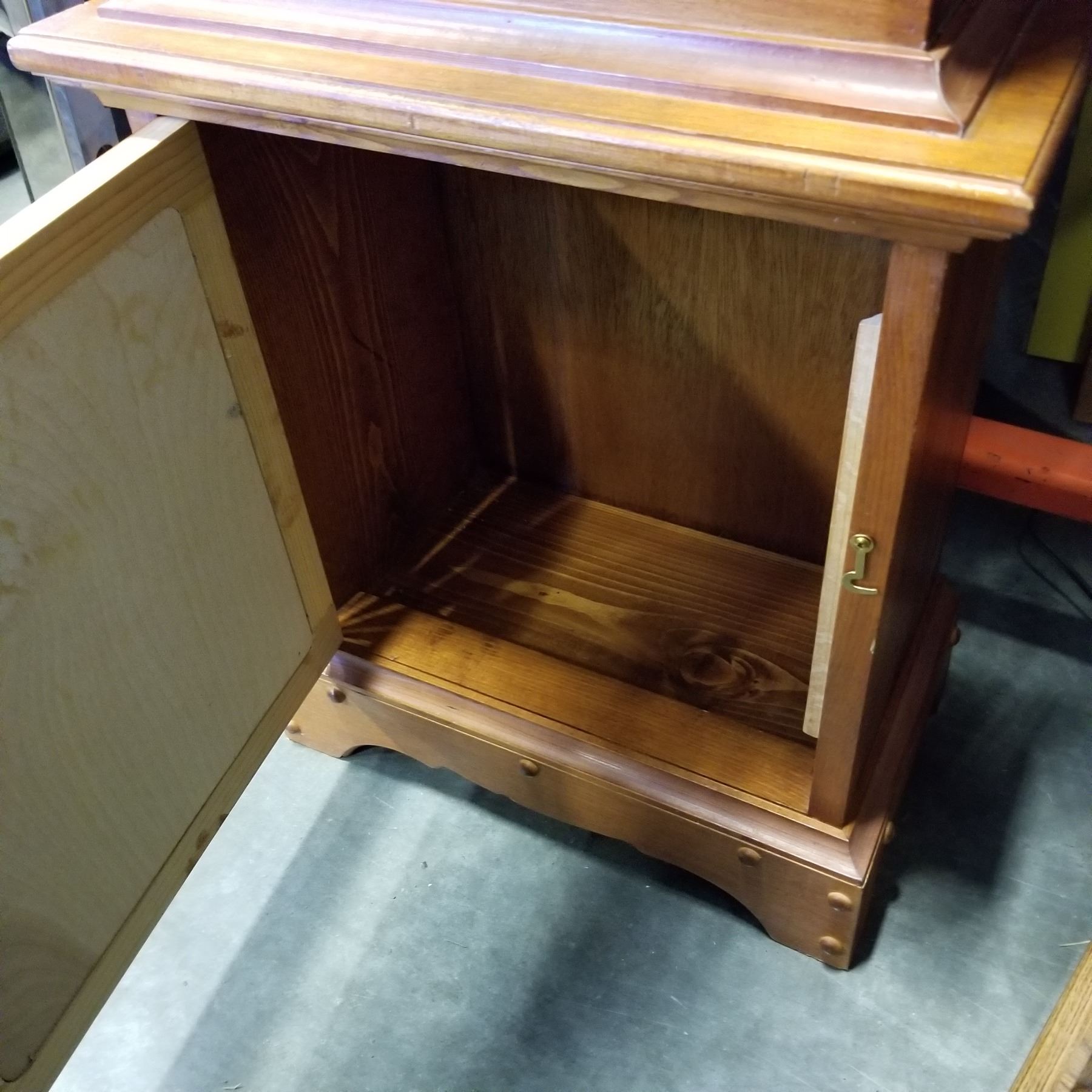 LARGE WOODEN 2 DOOR WORKING STAND UP CLOCK W/ PAINTED PICTURES