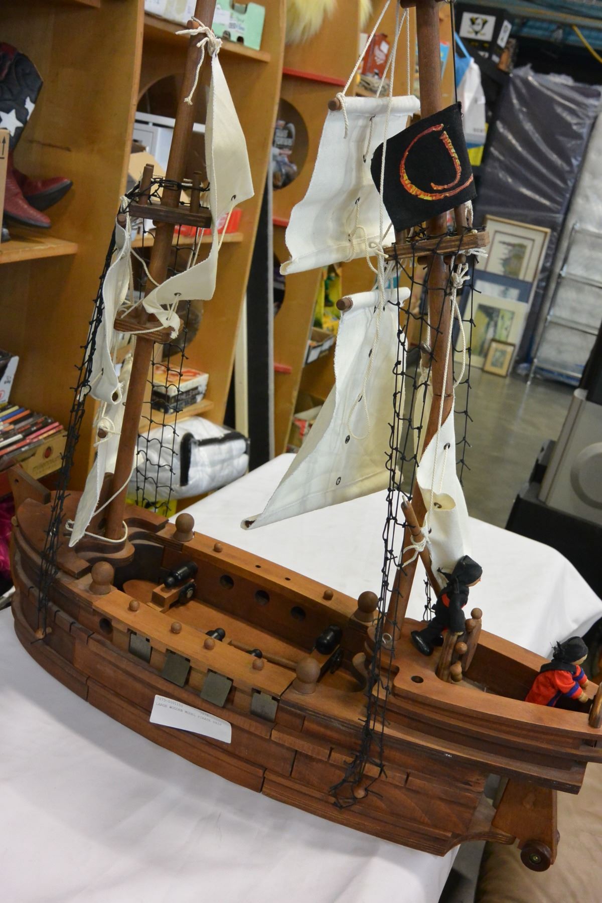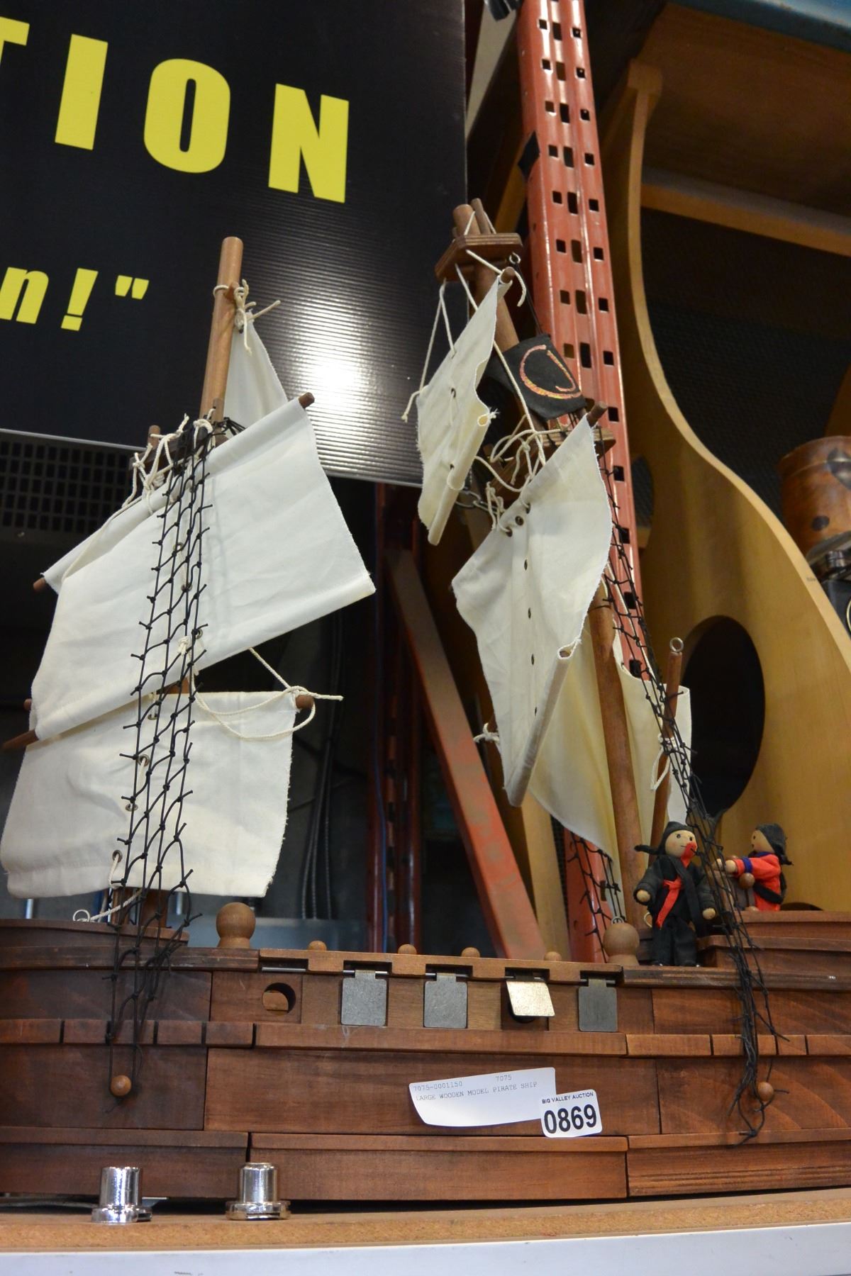 LARGE WOODEN MODEL PIRATE SHIP