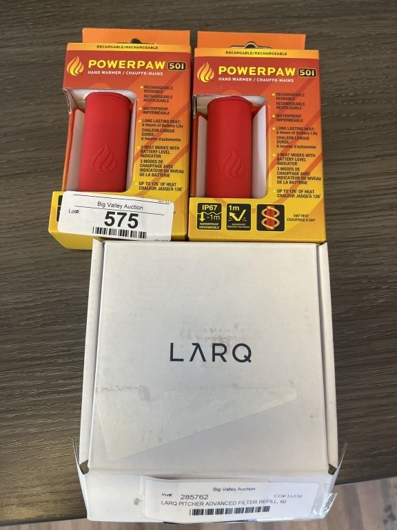 LARQ PITCHER ADVANCED FILTER REFILL, 60 GALLON AND 2 POWERPAW HAND WARMERS