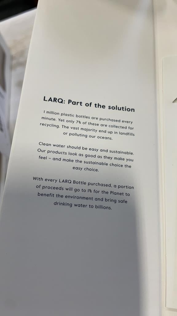 LARQ SELF CLEANING WATER BOTTLE 500ML - TESTED WORKING, RETAIL $124
