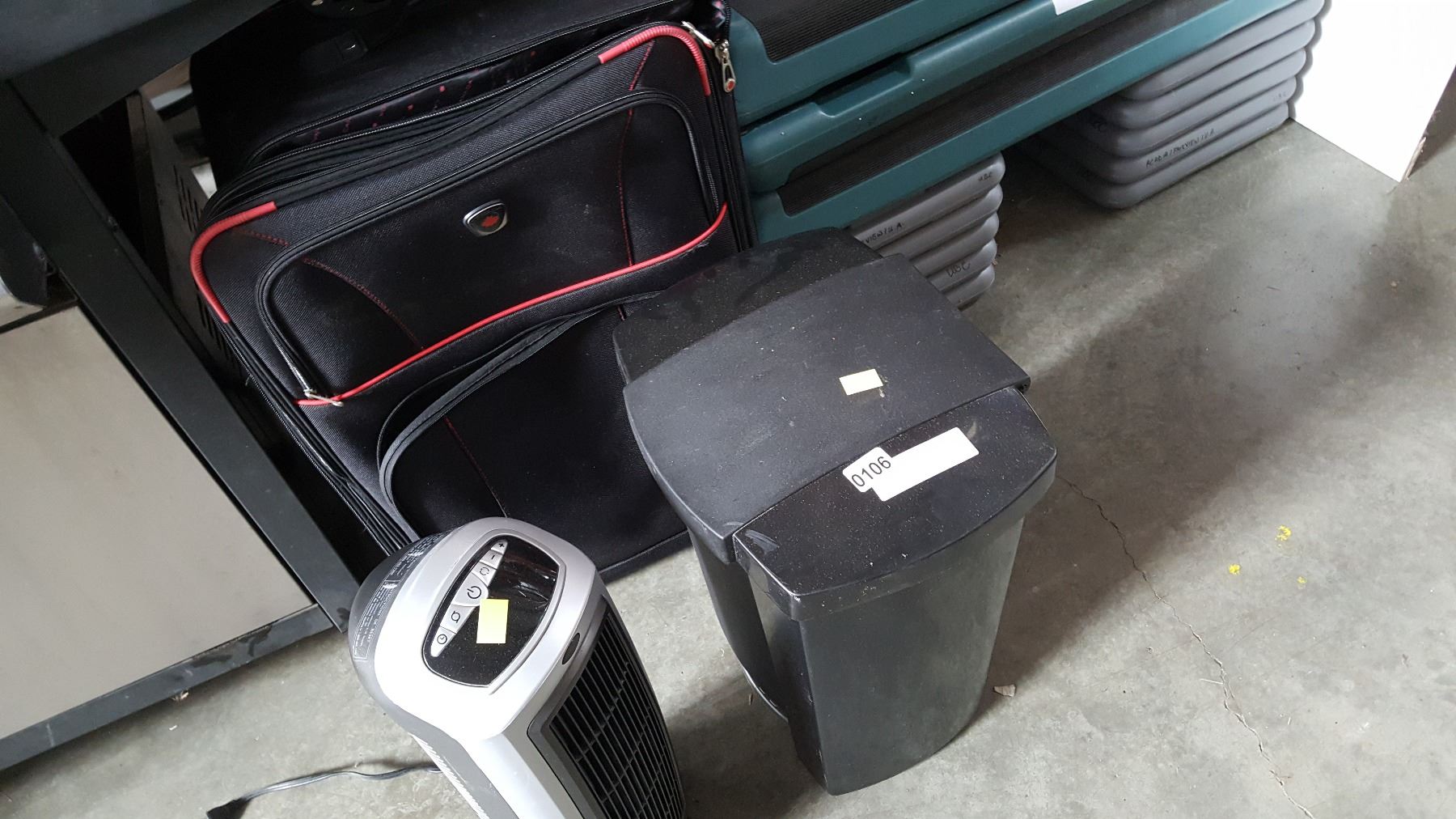 LASKE HEATER, GARBAGE BIN, AND LUGGAGE