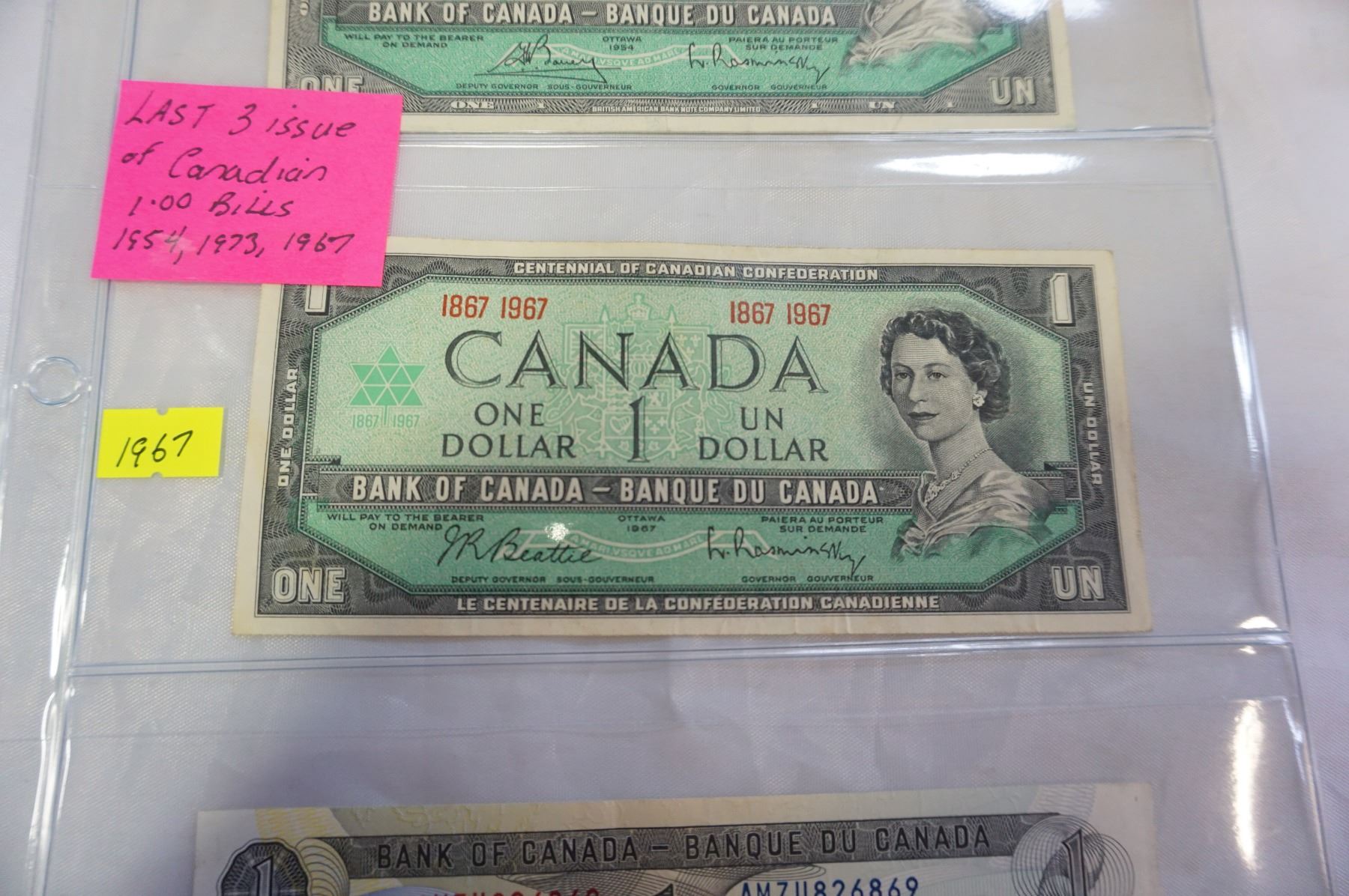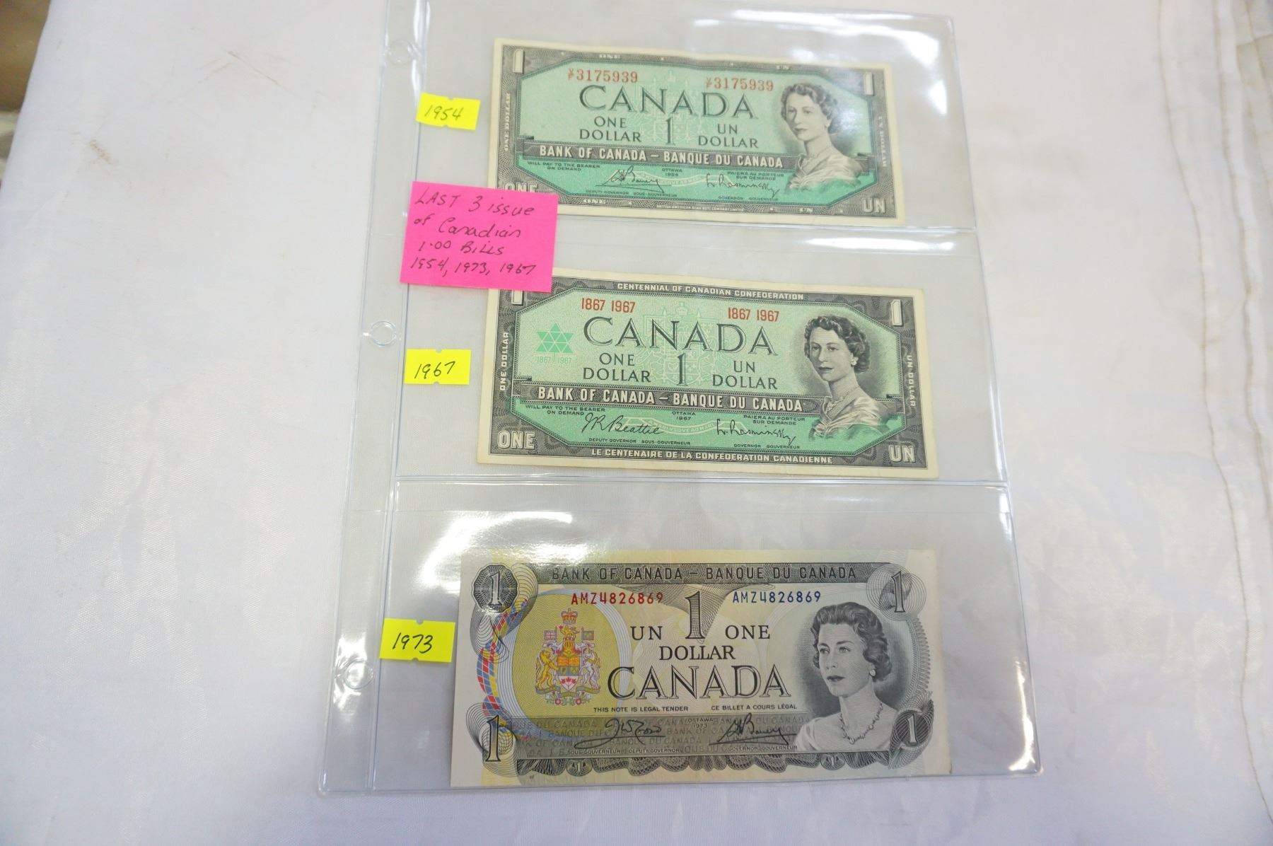 LAST 3 ISSUES CANADIAN $1 BILL 1954, 73, 67