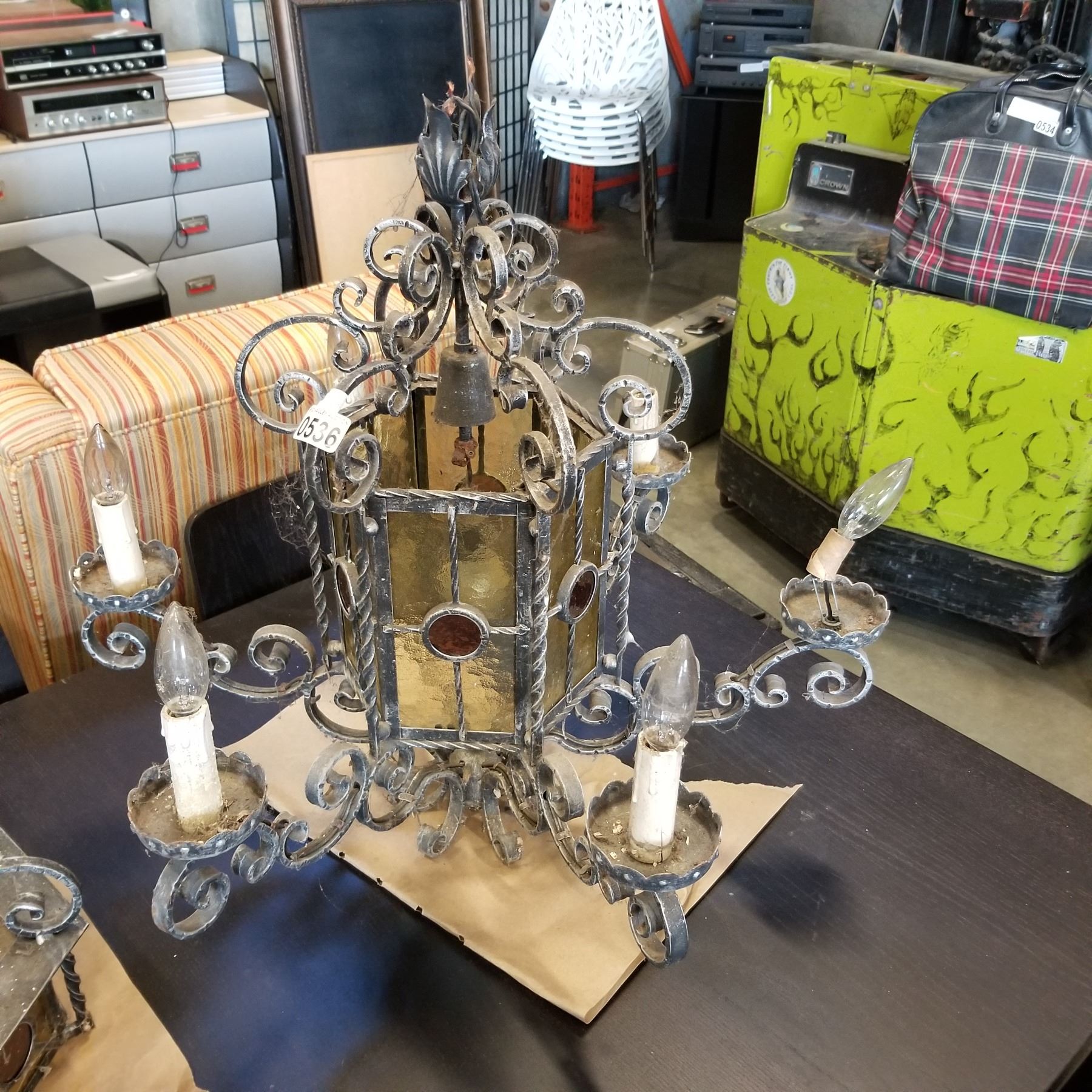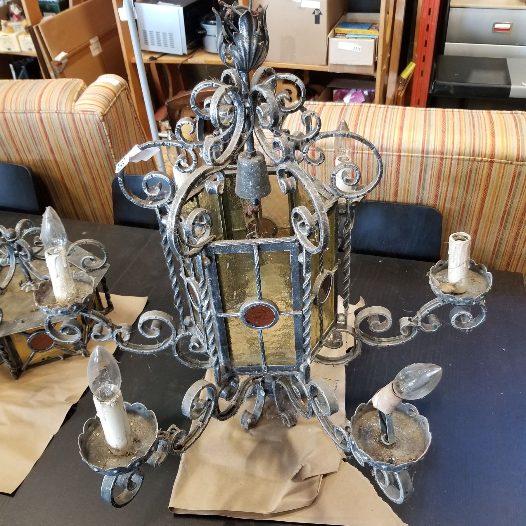 LEADED GLASS METAL CHANDELIER