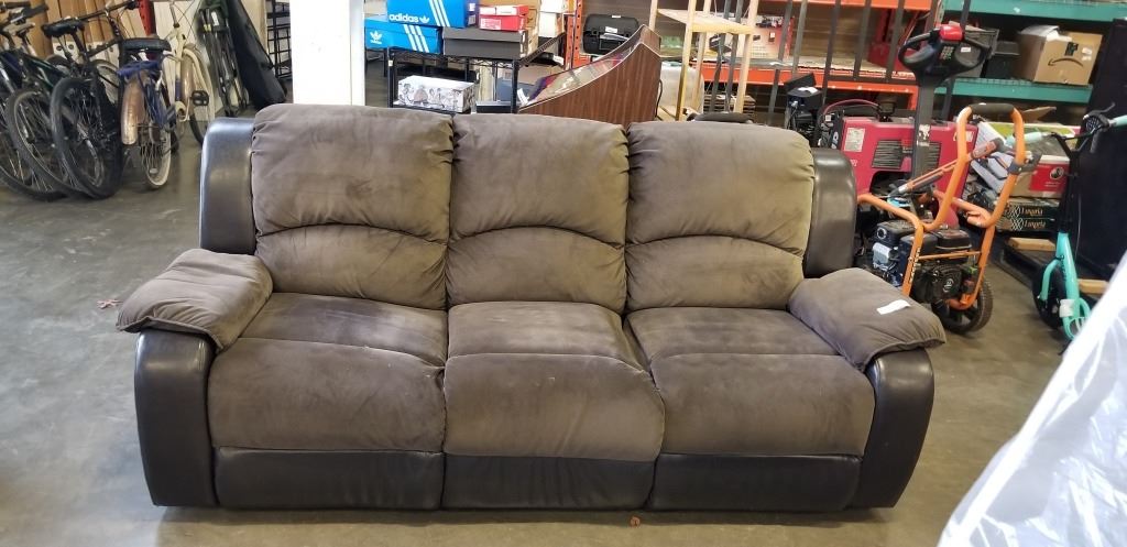 LEATHER AND MICORFIBER 3 SEATER, DOUBLE RECLINER SOFA