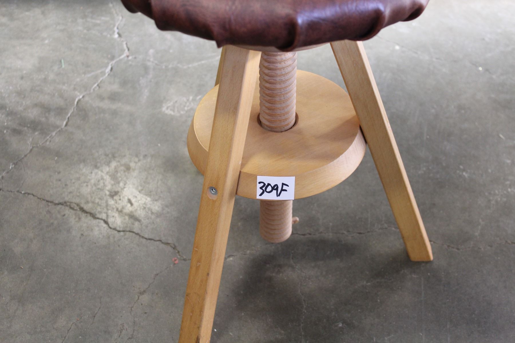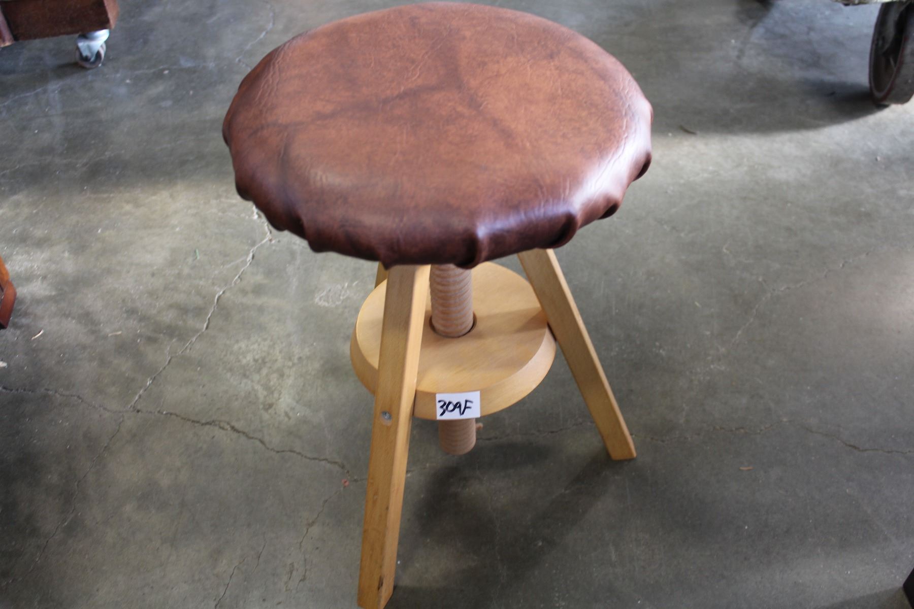 LEATHER AND WOOD ADJUSTABLE STOOL