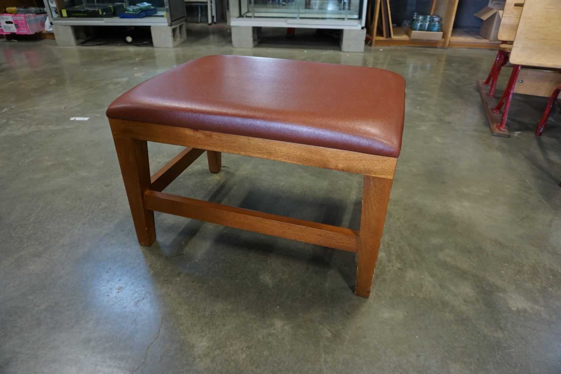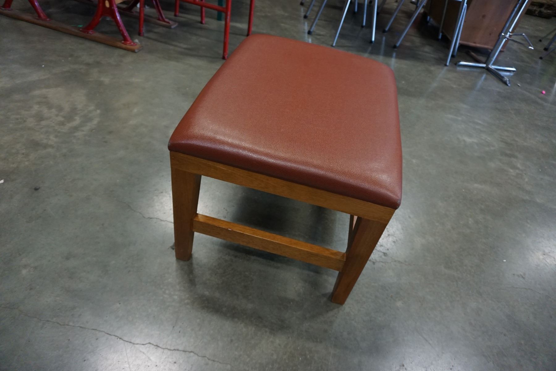 LEATHER AND WOOD FOOT STOOL