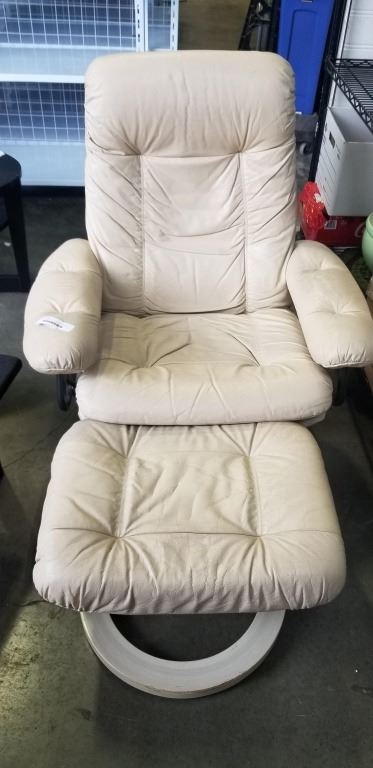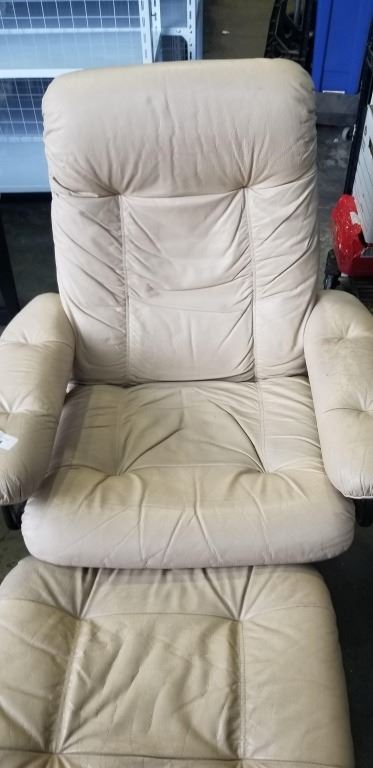 LEATHER RECLINING CHAIR AND OTTOMAN