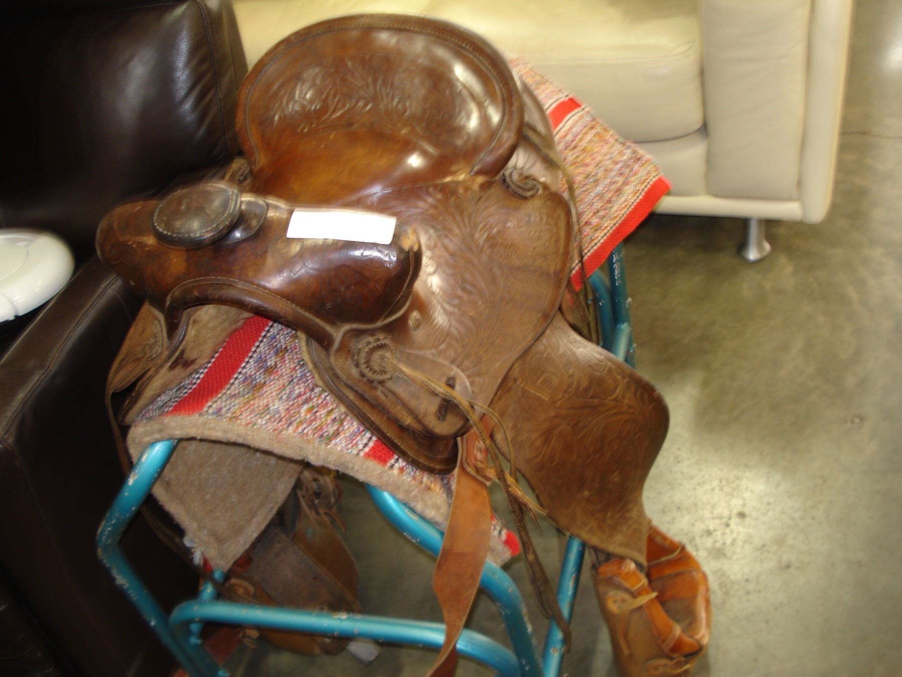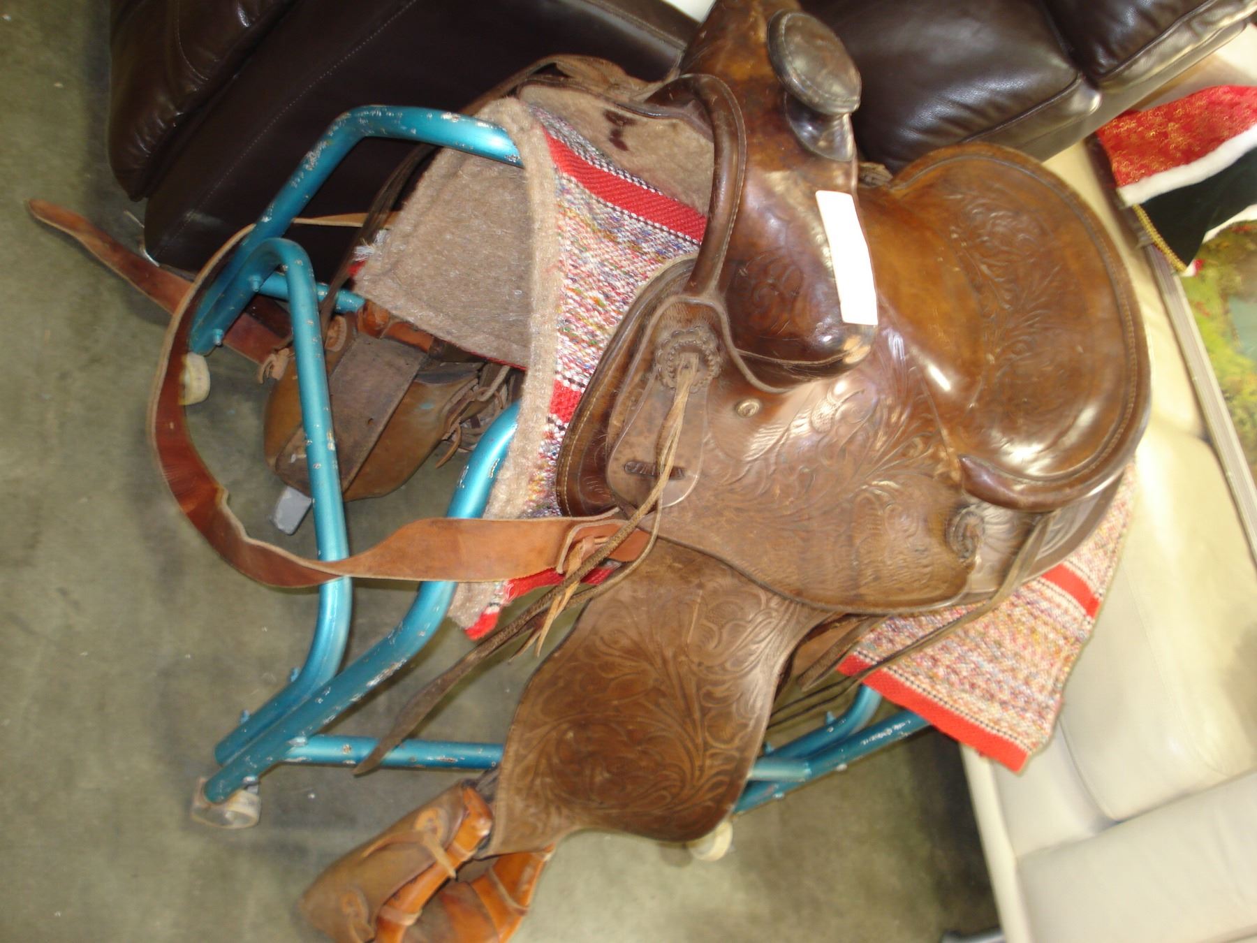 LEATHER SADDLE ON STAND AND BLANKET SADDLE KING TEXAS