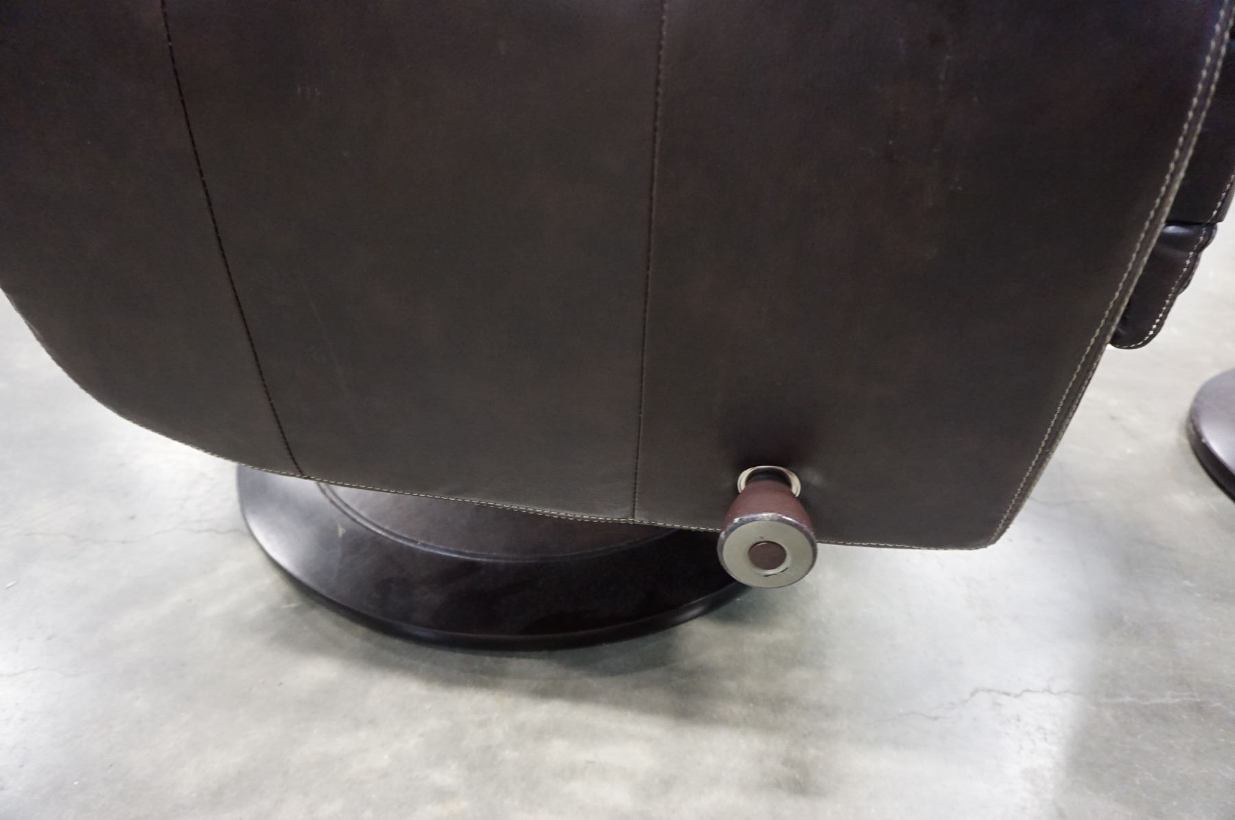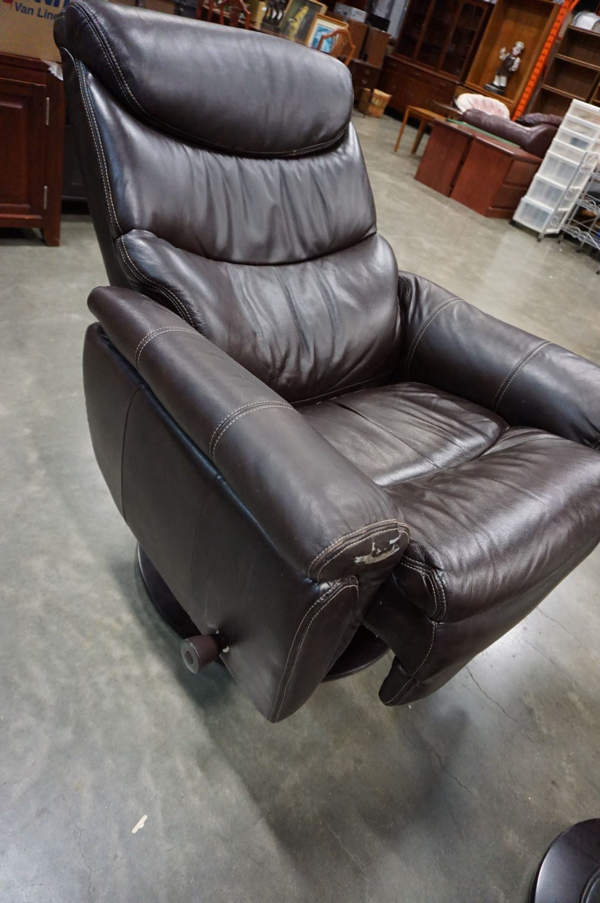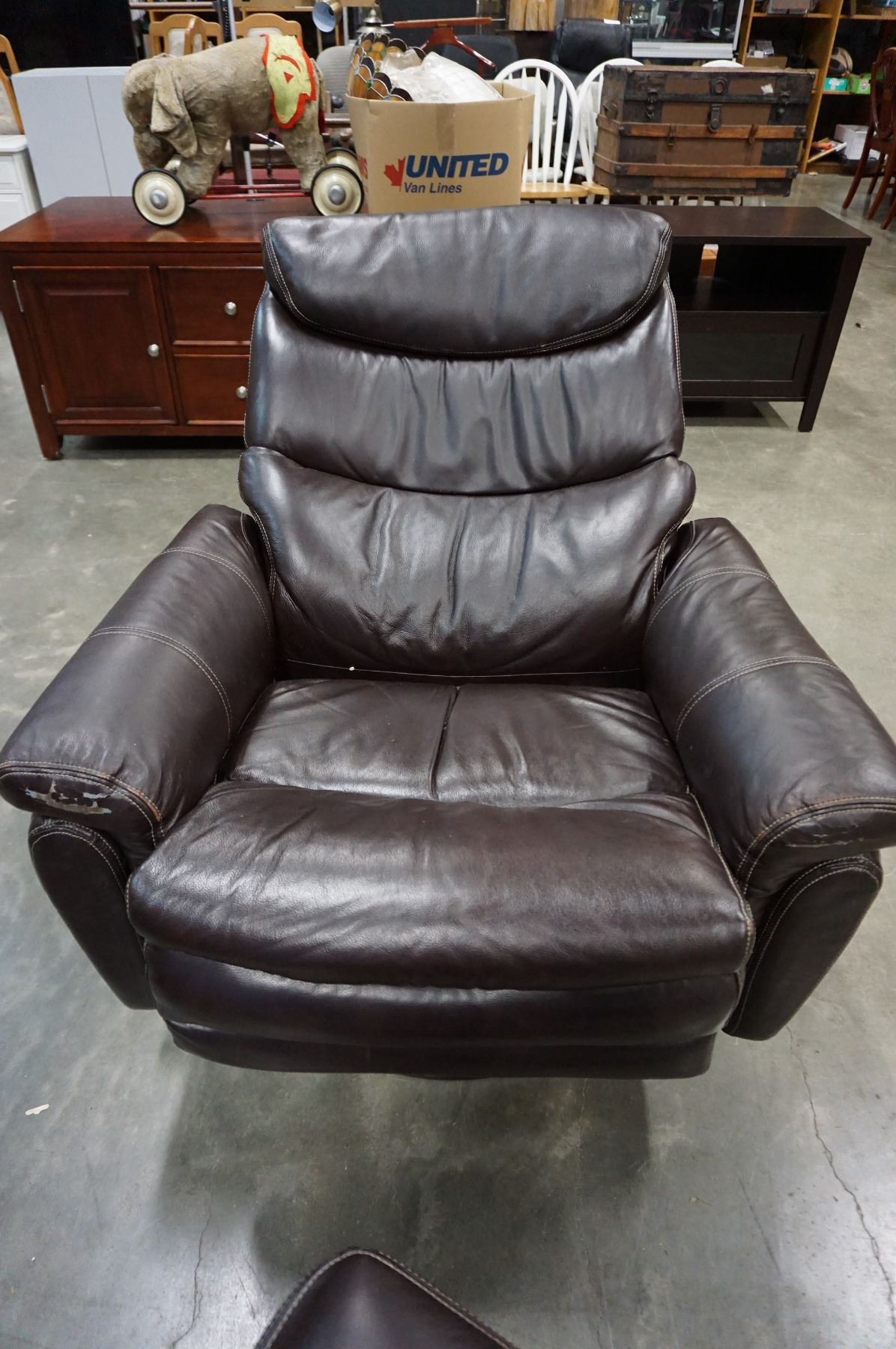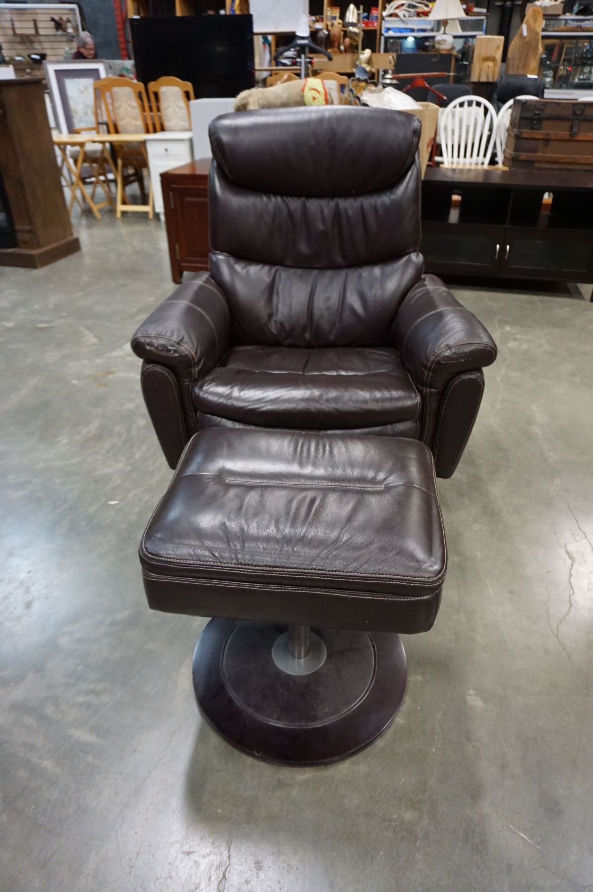 LEATHER SWIVEL RECLINER W/ GAS LIFT FLIP TOP FOOTSTOOL