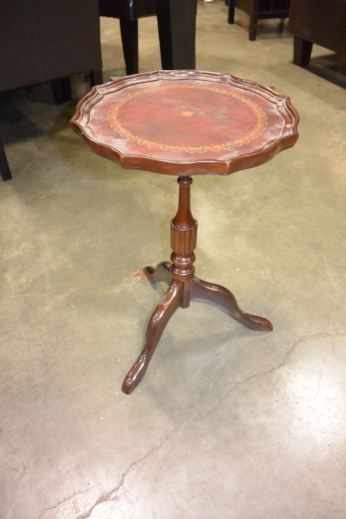 LEATHER TOP BOMBAY PARLOR TABLE AND WOOD PLANTSTAND