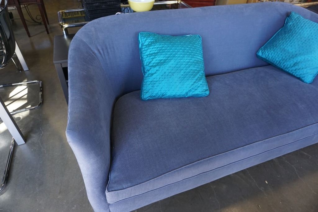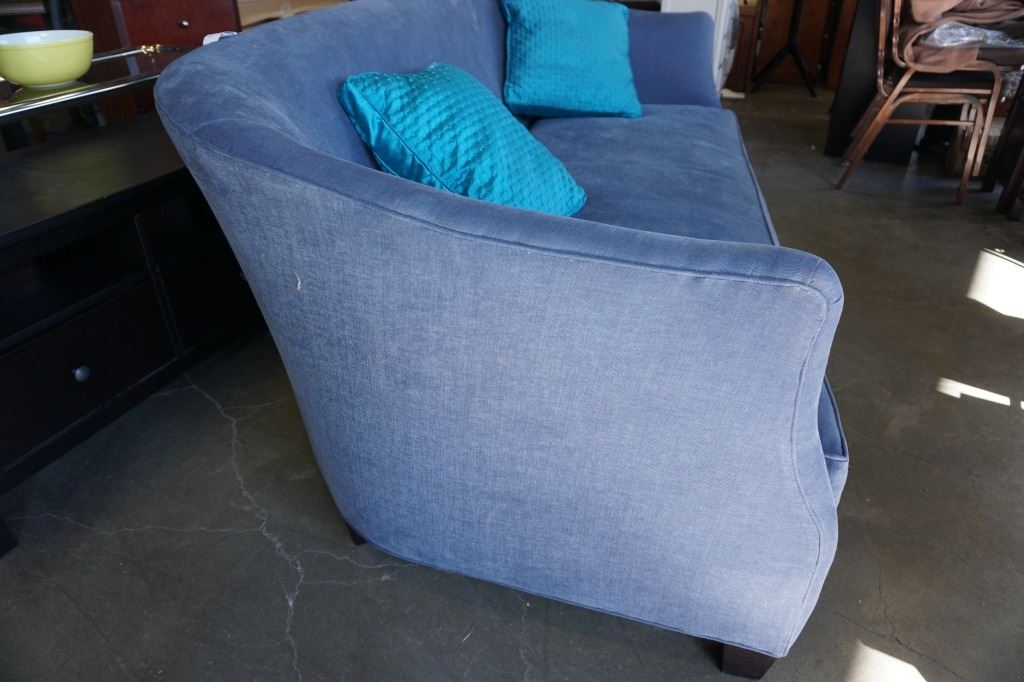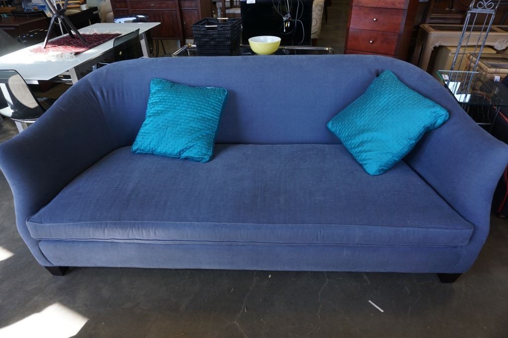 LEE INDUSTRIES CUSTOM HAND MADE BLUE SOFA WITH THROW PILLOWS - 83 INCHES WIDE, 38 INCHES DEEP