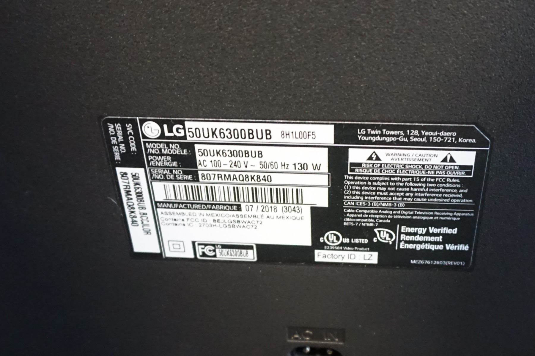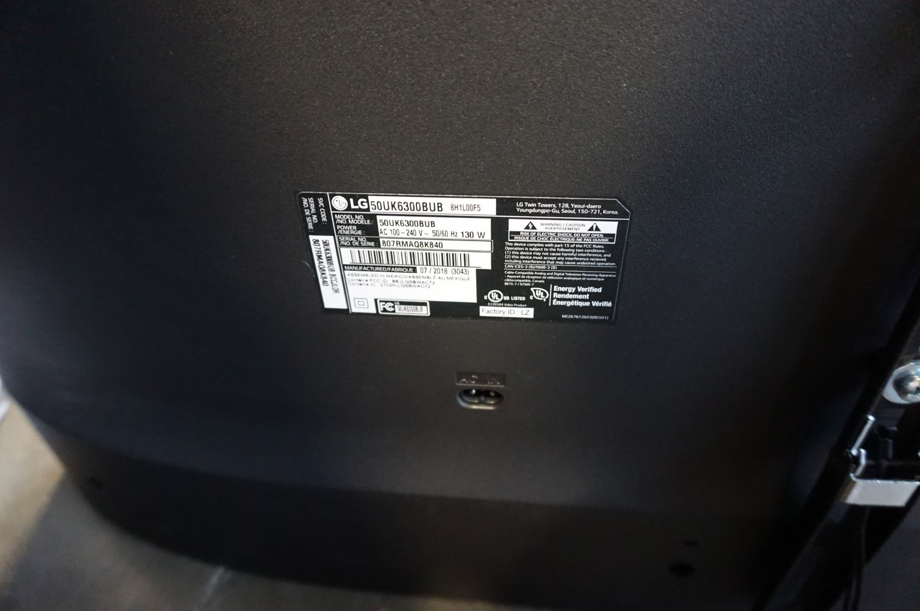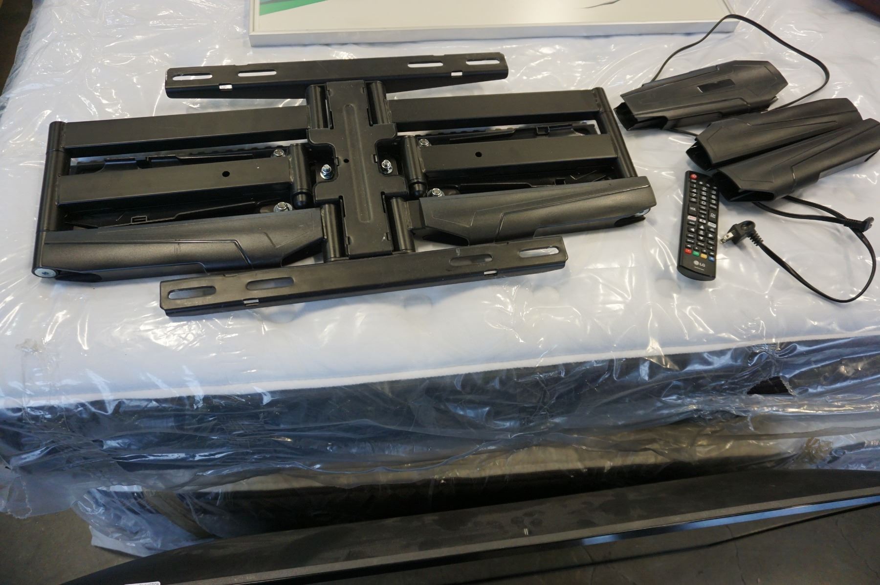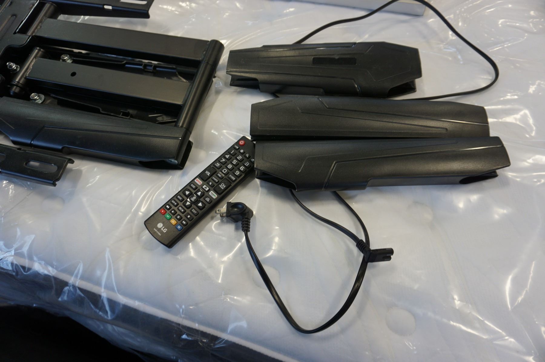 LG 50 INCH UHD LED TV WITH REMOTE, AND FULL MOTION WALL MOUNT, COMPLETE, WORKING