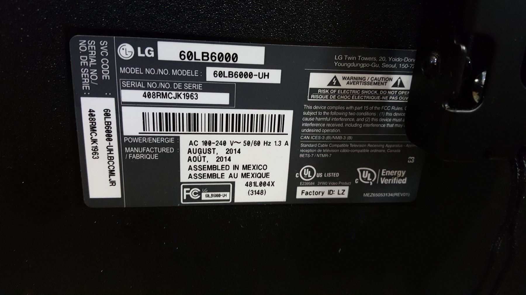 LG 60 INCH TV 60LB6000 LED W/REMOTE AND TILT WALL MOUNT TESTED AND WORKING