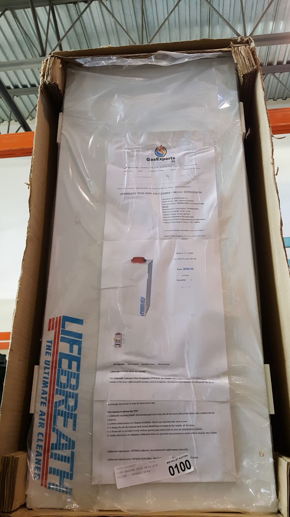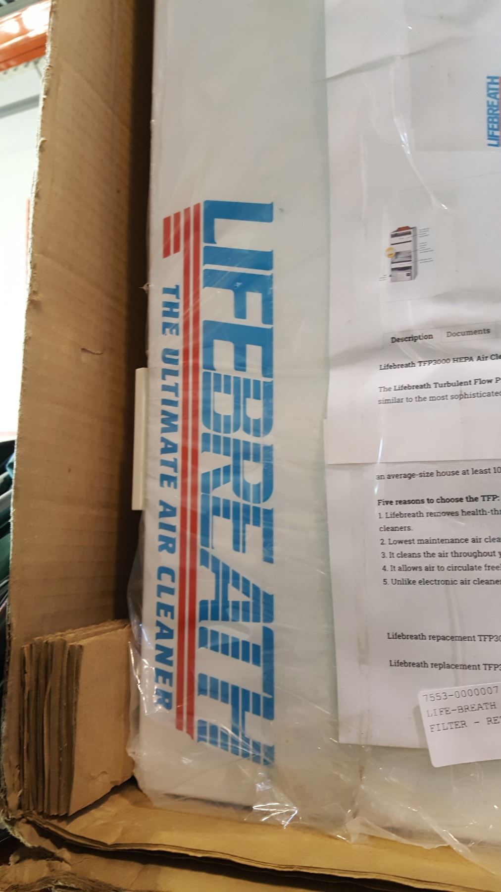 LIFE-BREATH TRUE HEPA AIR FILTER - RETAIL $698